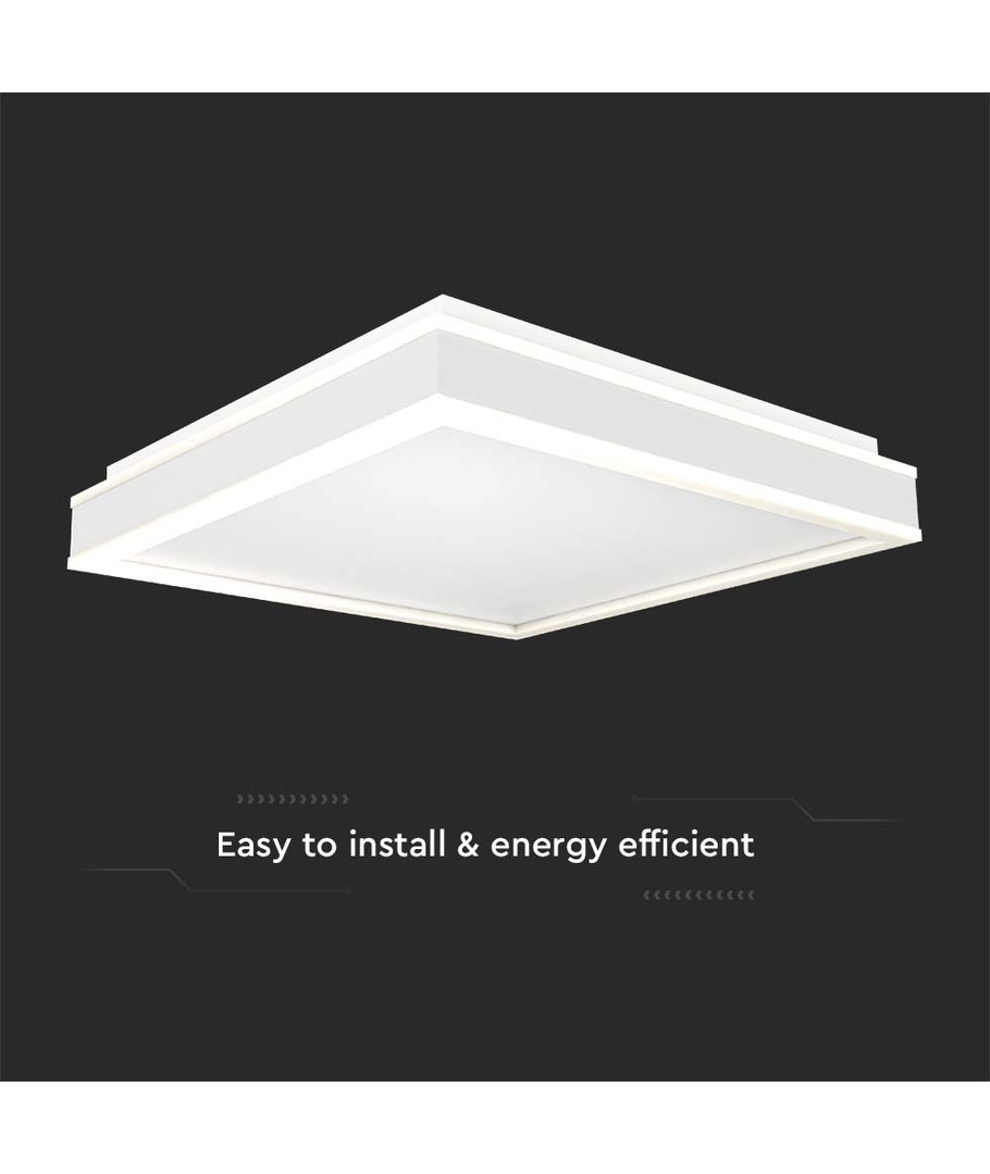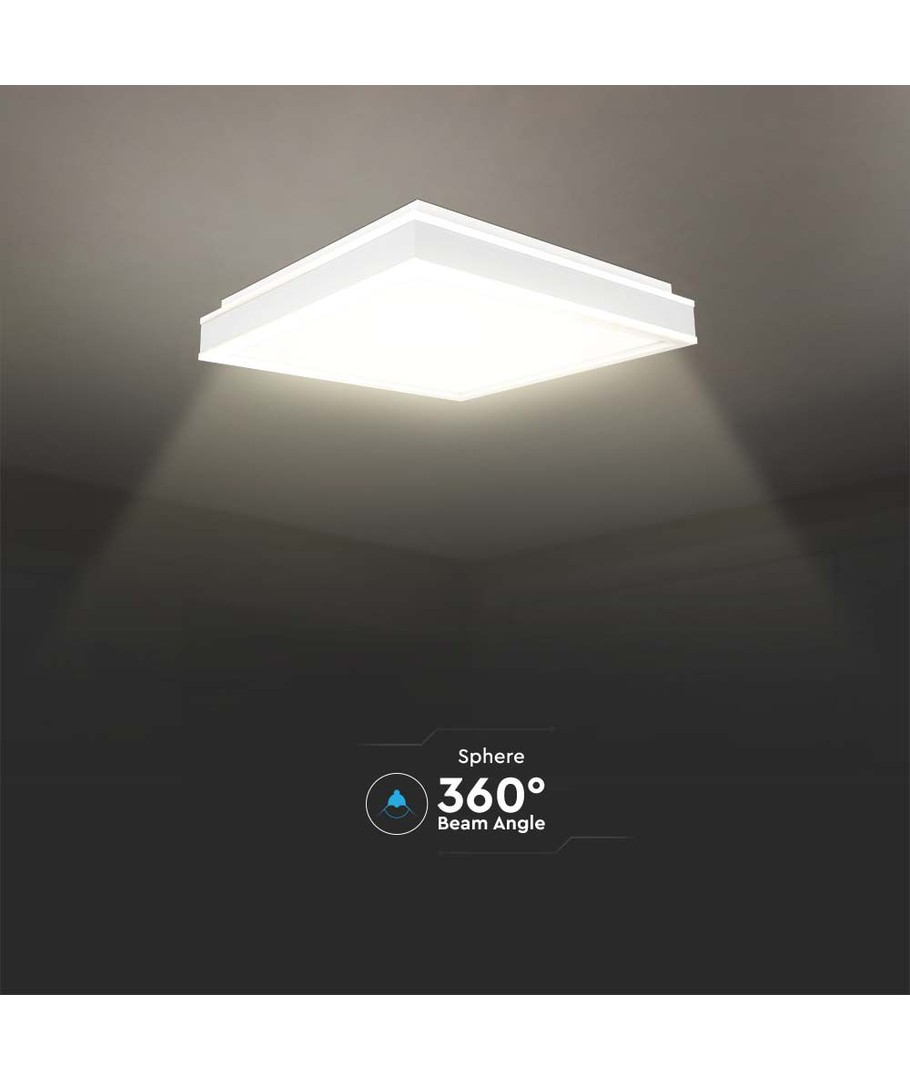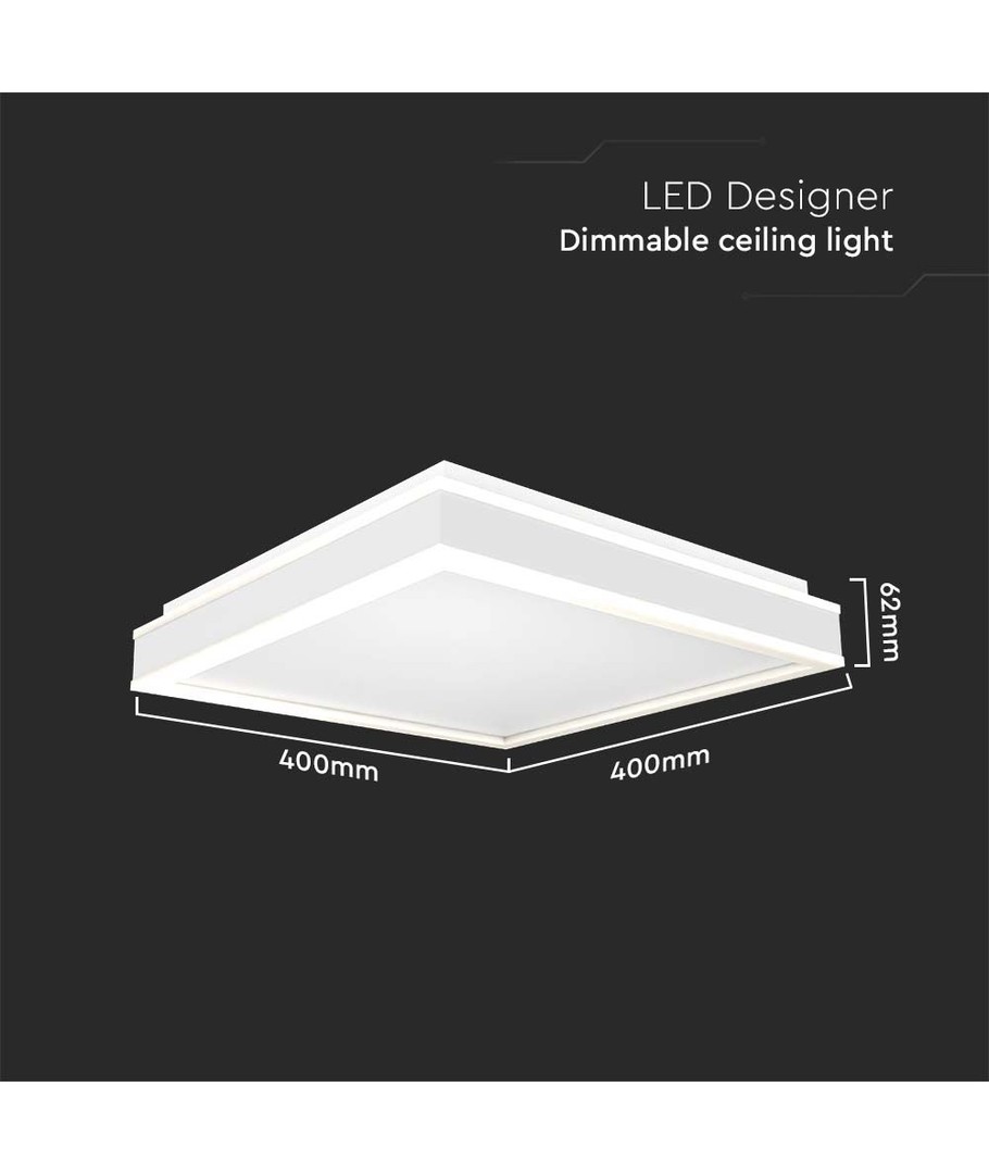 Lampens dimensioner er 400 x 62 x 400 mm, hvilket gør den perfekt til både små og store rum, hvor den kan installeres med lethed. Selvom lampen har en IP20 klassifikation og derfor ikke er modstandsdygtig over for vand, er den ideel for indendørs brug, hvor et elegant og funktionelt lys er nødvendigt.