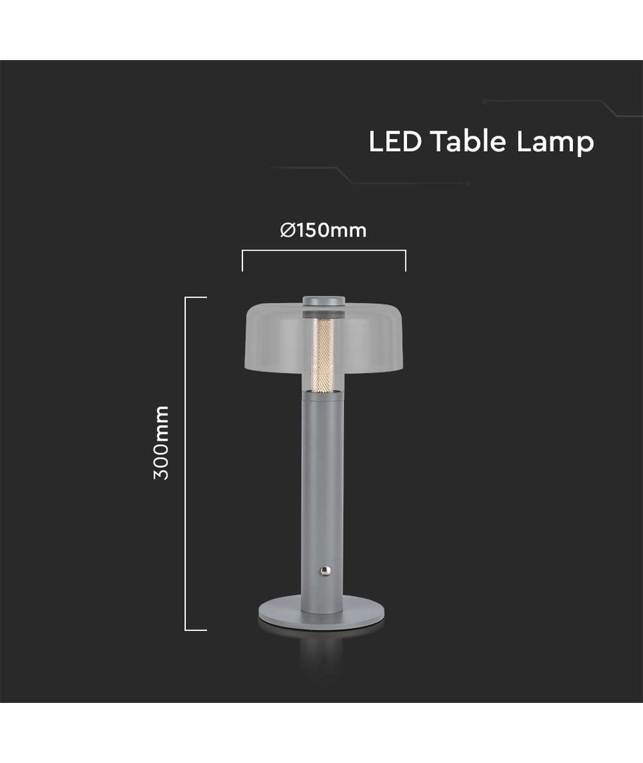 Med en dimension på 300 x 150 mm passer denne bordlampe perfekt på enhver skrivebord, natbord eller i en reol. Dens slanke design i en elegant grå farve gør den til et stilfuldt supplement i ethvert moderne hjem.