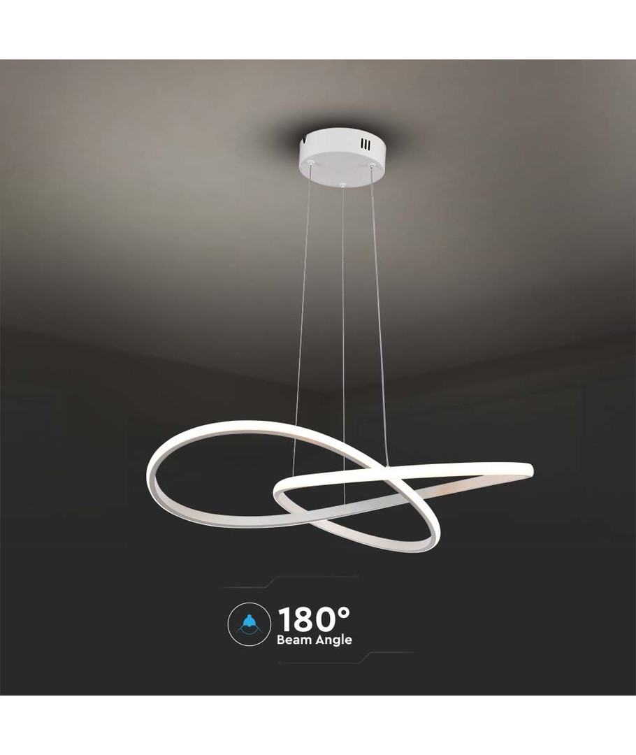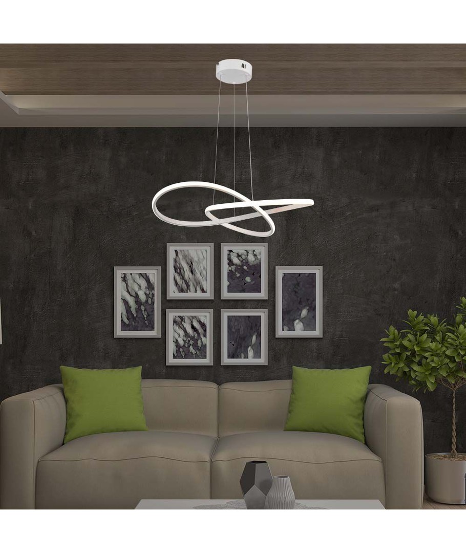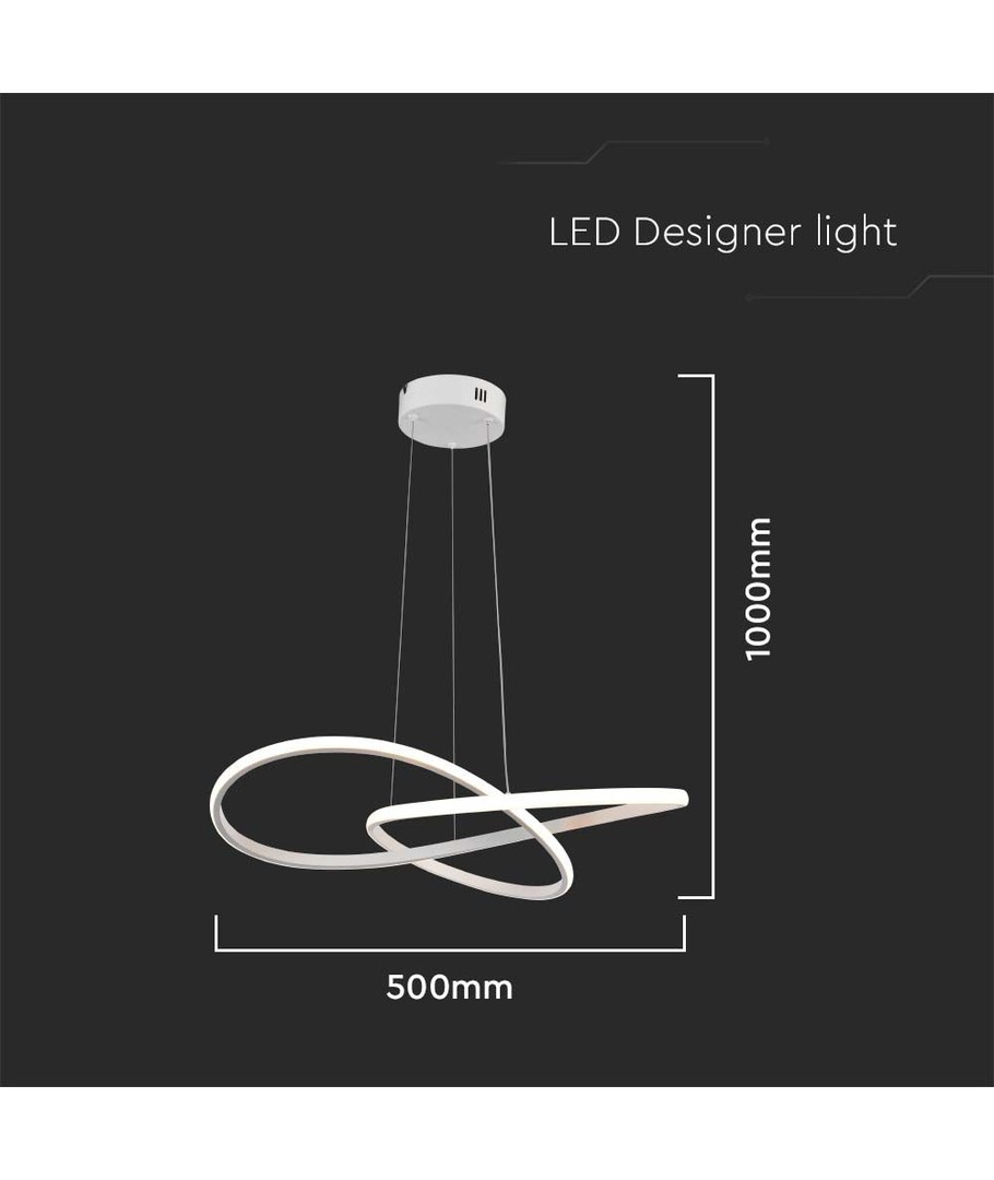 Lampen har en diameter på 500 mm og en længde på 1000 mm, hvilket gør den perfekt til at hænge over spiseborde, i stuer eller på kontorer. Lampens hvidlakerede hus giver et stilrent udseende, der passer ind i enhver indretning.