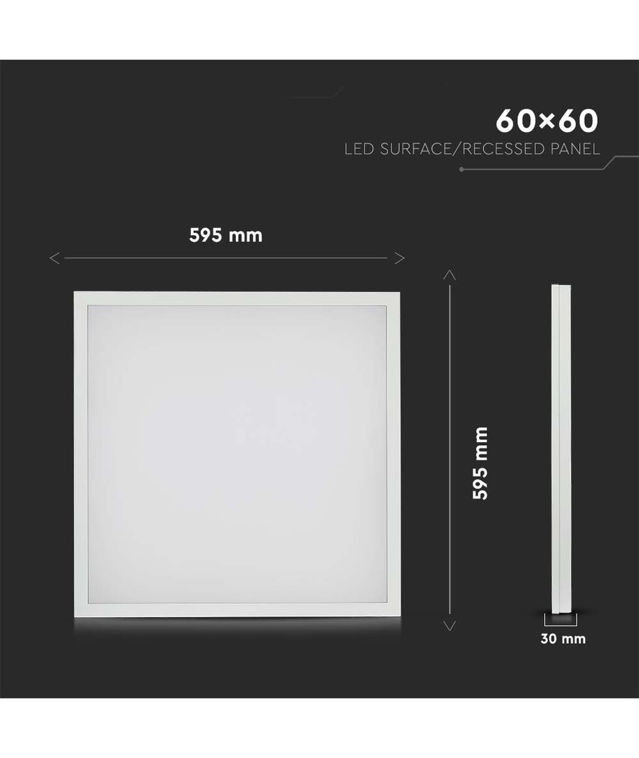 Dets kompakte dimensioner på 595 x 30 x 595 mm gør det til et ideelt valg for flade, jævne overflader, hvor hverken plads eller æstetik skal kompromitteres.
