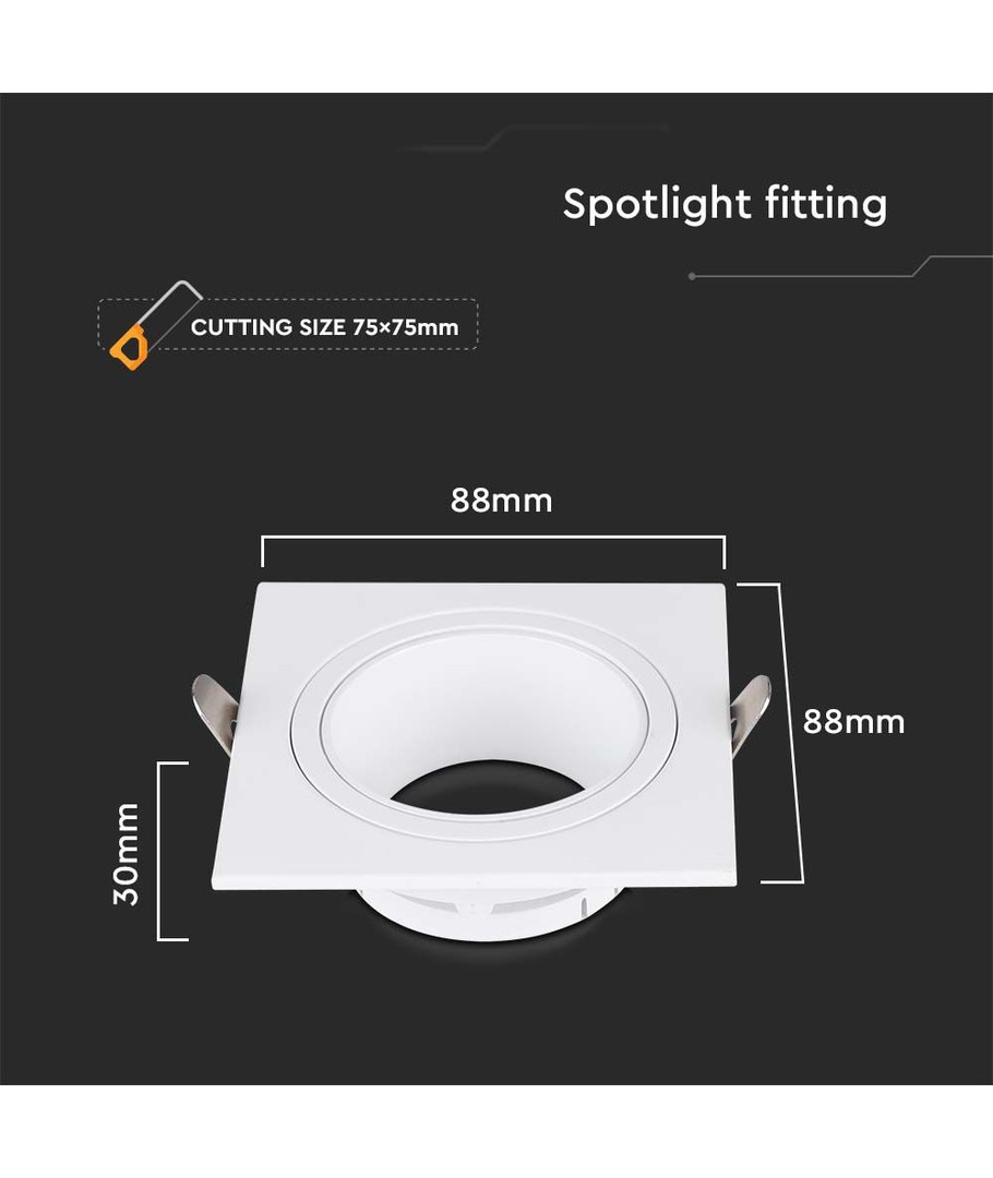 Spotlampens kompakte størrelse på 88 x 30 x 88 mm gør den ideel til forskellige installationssteder. For en problemfri monteringsproces kræves der en hul størrelse på 75 mm, hvilket gør installationen enkel og ligetil.