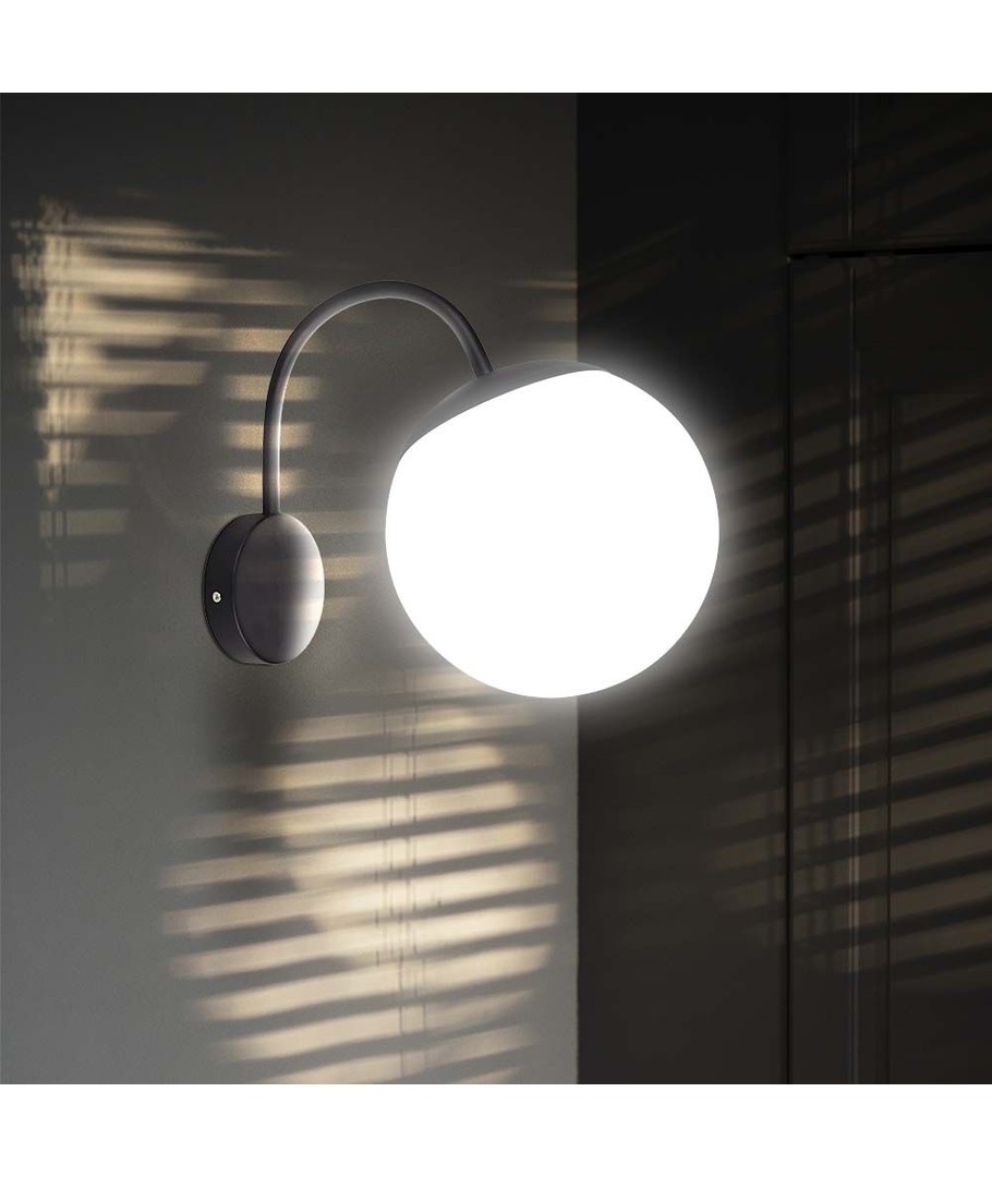Vores stilfulde væglampe i mat sort kombinerer klassisk design med moderne materialer. Med en opal plastkugle, der blødt diffuserer lyset, bliver denne lampe et perfekt valg til både stue, gangarealer eller soveværelset.
