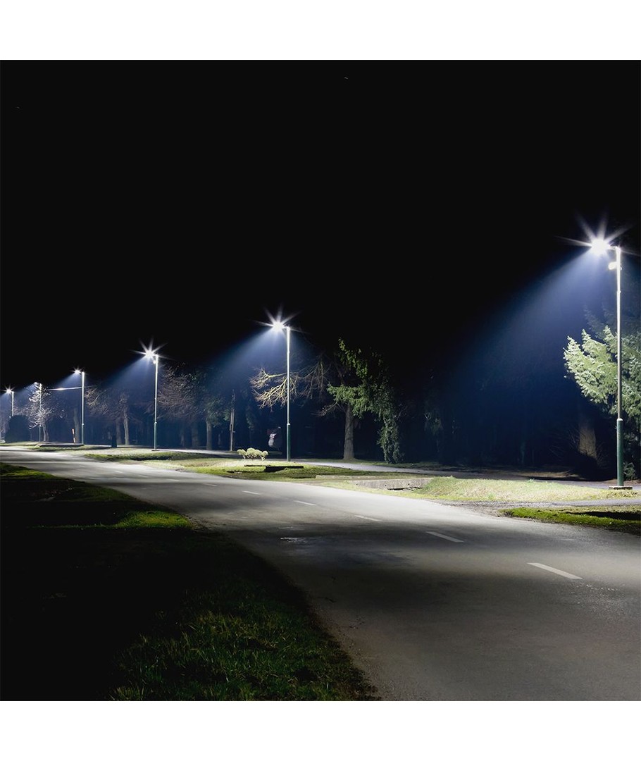 Oplev kraftig og effektiv belysning med vores 150W LED vejlygte, der er udstyret med en Samsung chip. Denne lygte sikrer en fremragende lysstyrke på 17.250 lumens, hvilket gør den ideel til store udendørsområder.