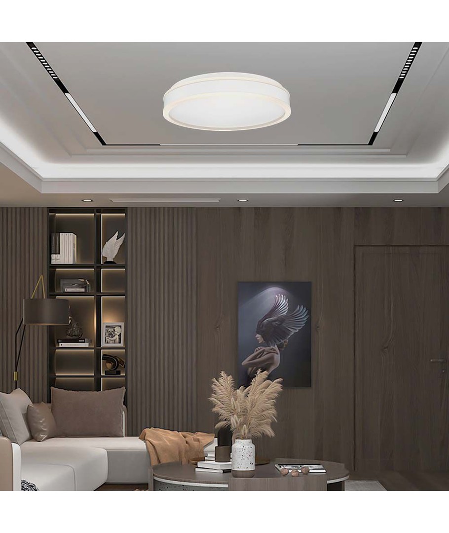 Med en diameter på 450 mm og en højde på 62 mm, passer denne runde lampe problemfrit ind i ethvert moderne interiør. Det er både dekorativt og funktionelt, hvilket gør det til en fremragende tilføjelse til både stuer og kontorområder. Det integrerede lys sikrer nem installation uden besværet med pærer.