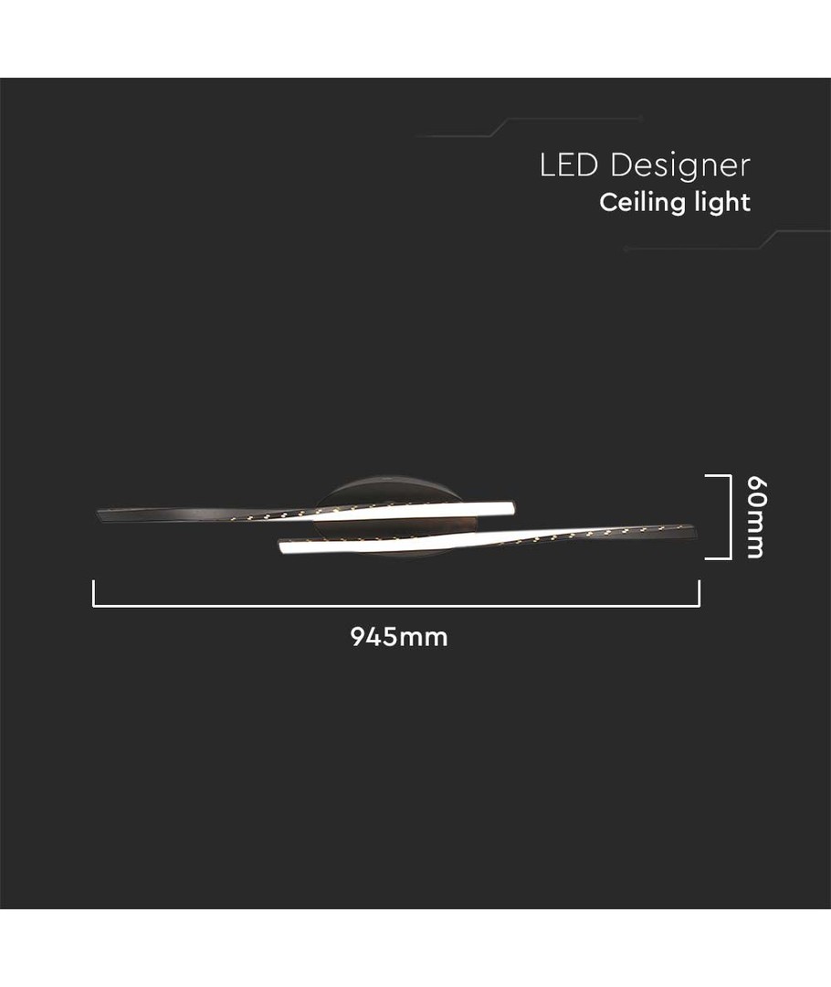 Lampen har en slank profil med dimensionerne 945 x 60 mm, hvilket gør den til et elegant og diskret valg til loftbelysning. Med en IP20-klassificering er denne lampe bedst egnet til indendørs brug, da den ikke er modstandsdygtig overfor vand.