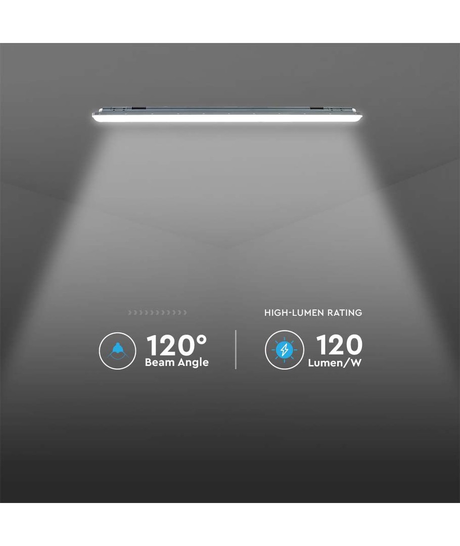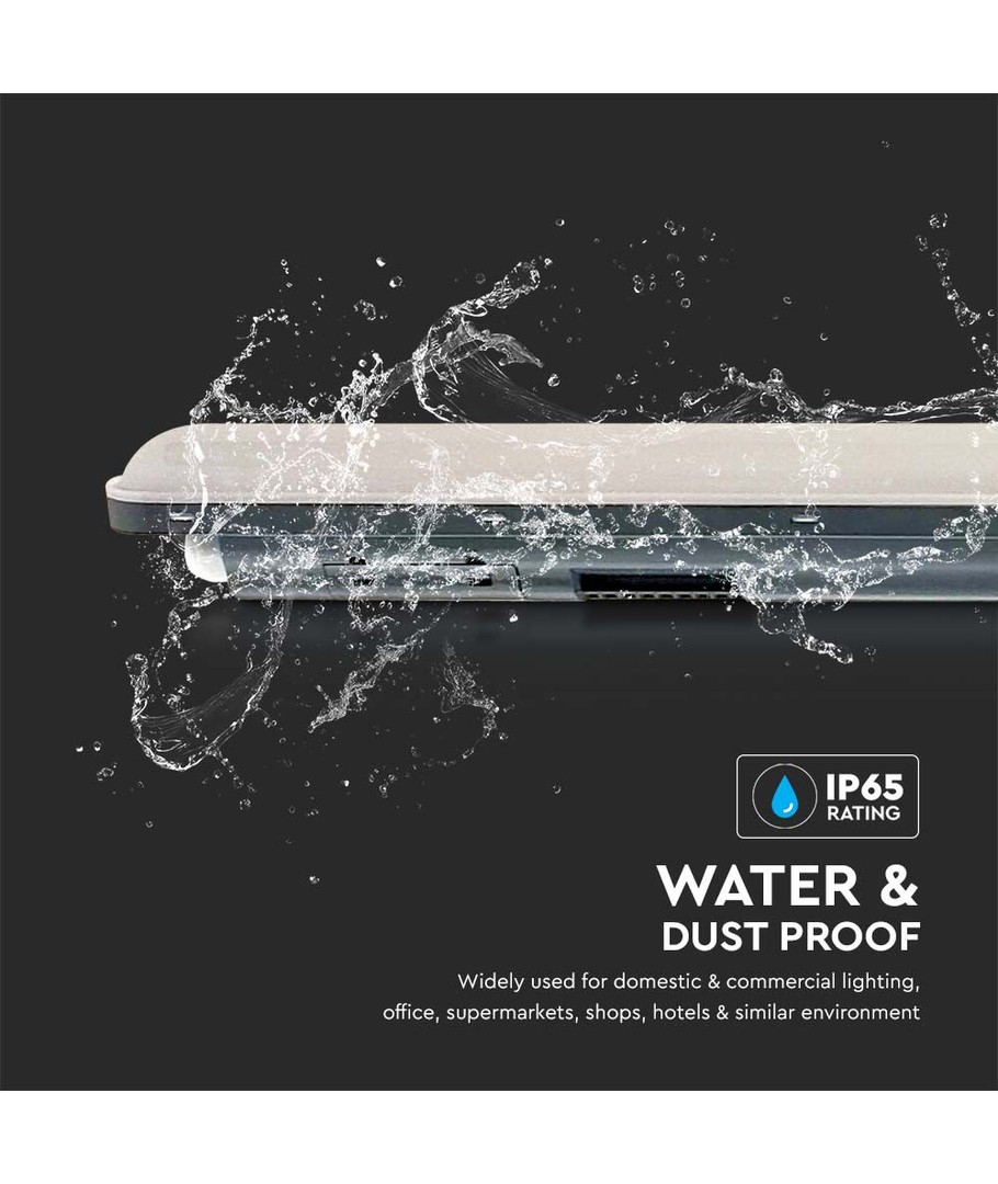 For dem, der søger belysning, der både er holdbar og tilpasningsdygtig, er dette rør udstyret med en IP65 klassifikation, hvilket betyder, at det kan bruges udendørs i områder udsat for vandstænk og regn. Dimensionerne på 1200 x 60 x 64 mm sikrer, at det passer ind i de fleste installationer.