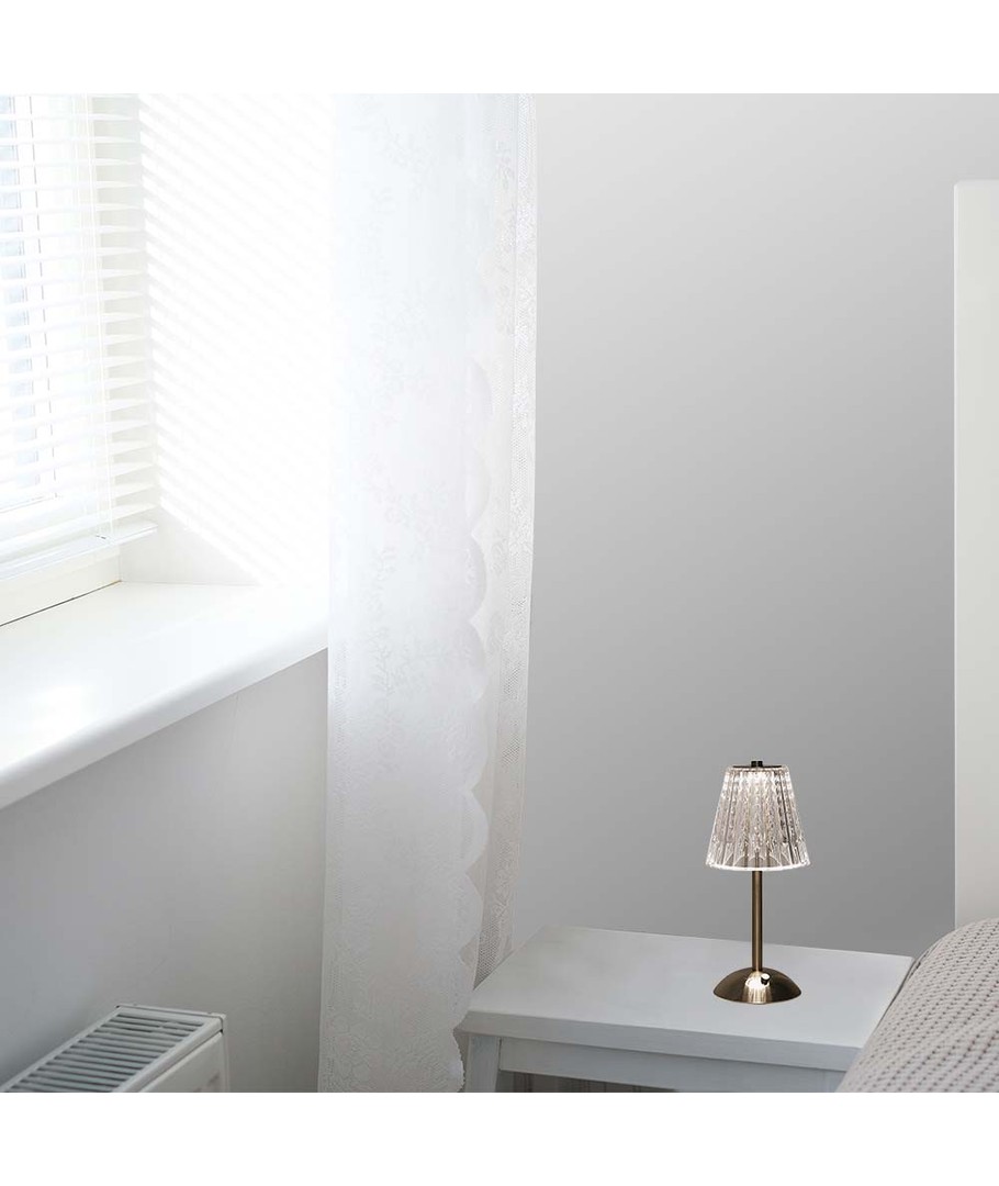 Den brede spredning på 120 grader sikrer en jævn fordeling af lyset, hvilket er med til at skabe en behagelig atmosfære uden skarpe skygger. Lampens dimensioner på 295 x 130 mm gør den kompakt og nem at placere på skriveborde, natborde eller hylder uden at optage for meget plads.