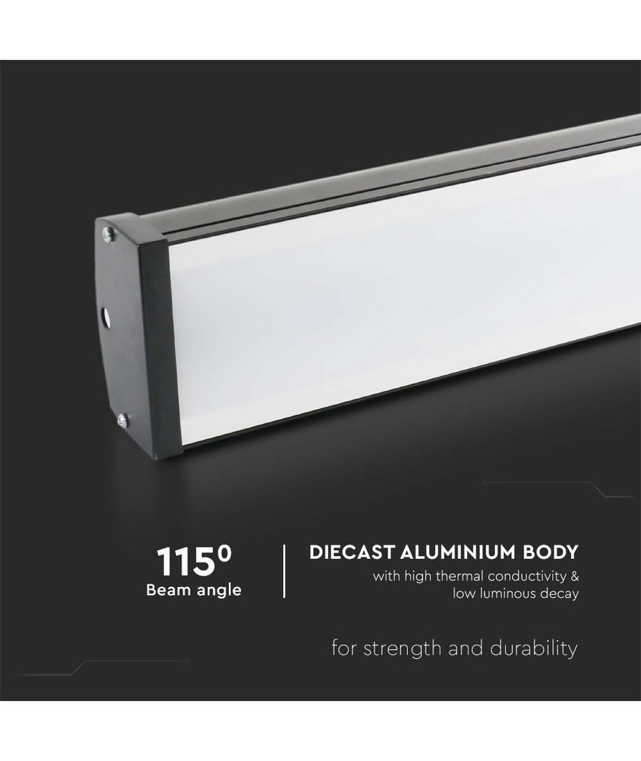 Oplev effektiv belysning med vores Lineær Highbay lampe, der har en effekt på 100W og tilbyder en enestående lysstyrke på 8700 lumens. Dette produkt sikrer en jævn lysspredning med dets brede vinkel på 115 grader, som er ideel til at oplyse store områder.