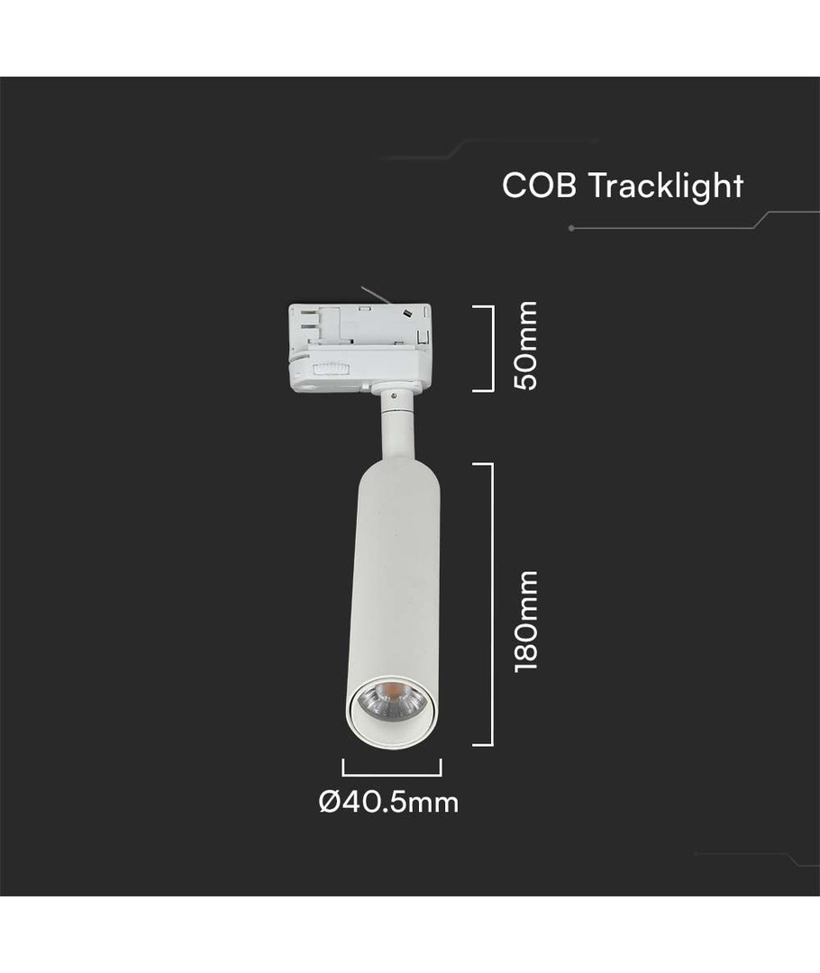 Denne skinnespot leverer en effektiv belysning med en effekt på 7W og en lysstyrke på 700 lumens. Lyset har en fokuseret vinkel på 24 grader, hvilket sikrer et kontrolleret og præcist lysudfald.