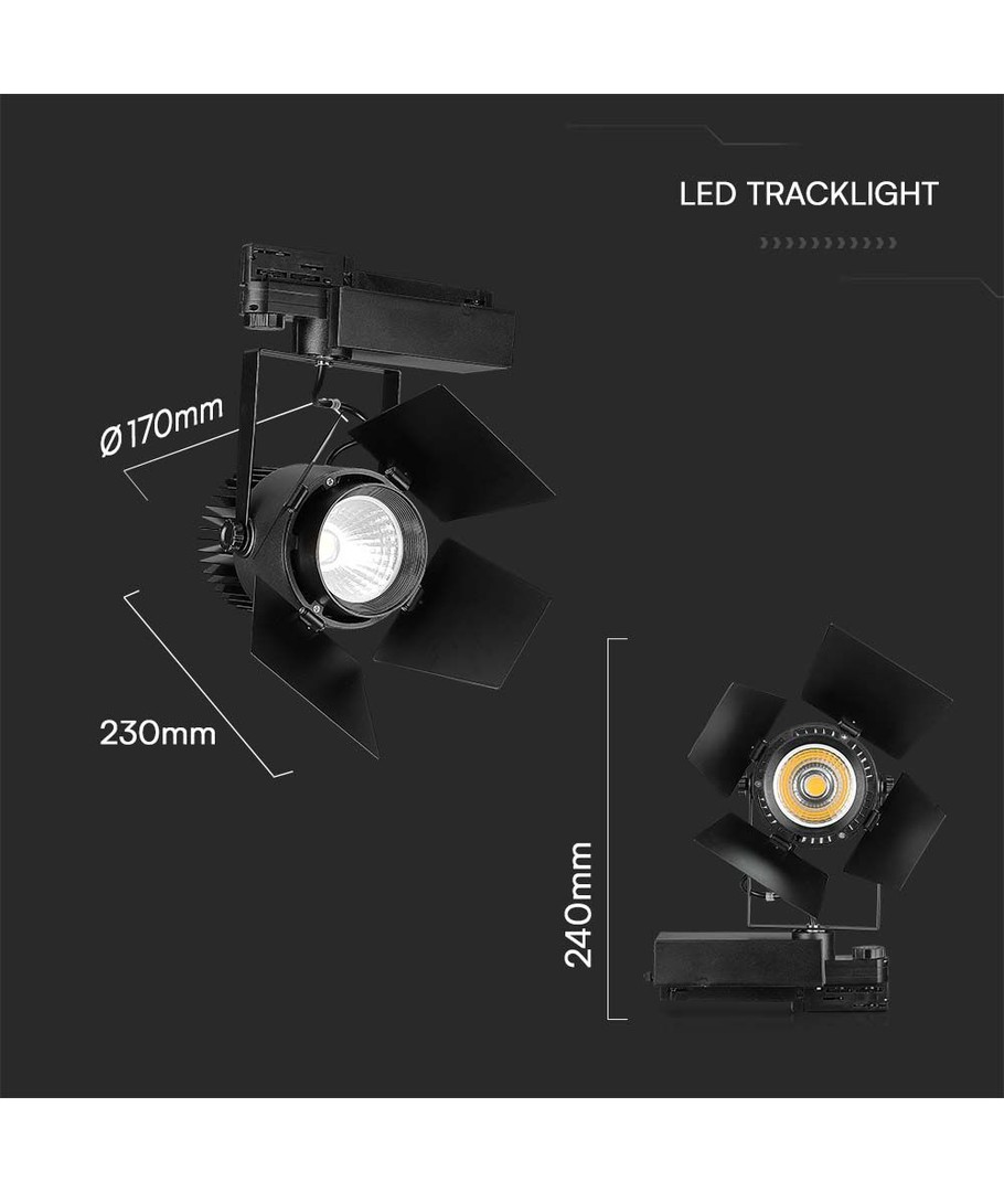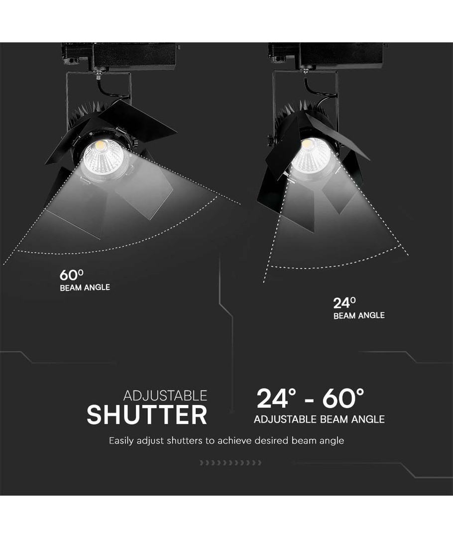 Dette elegante skinnespot er designet til dem, der kræver ekstra høj lyskvalitet og pålidelig drift. Med en effekt på 33W og en lysstyrke på 3000 lumens, leverer den et fokuseret lys med en spredning på 24/60 grader, der sikrer præcis belysning.