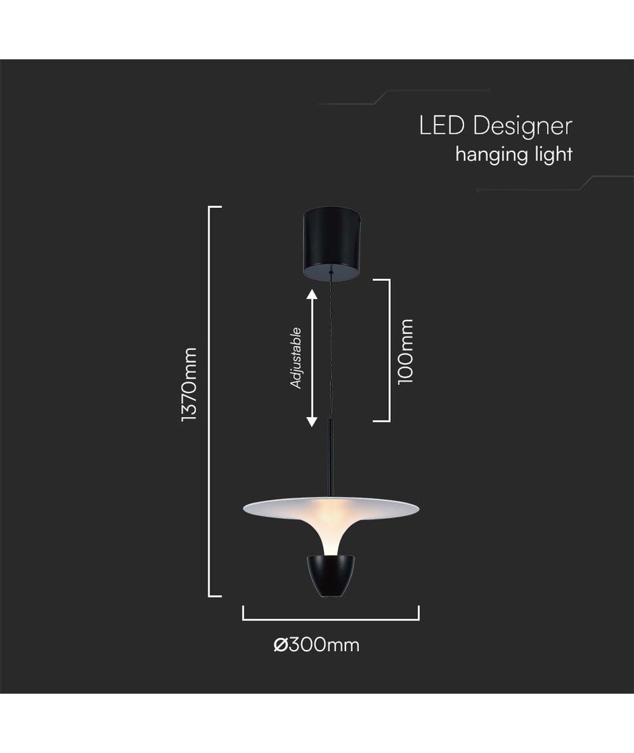 Lampen har et elegant design med en kombination af hvide og sorte elementer, der passer perfekt til moderne indretninger. Selvom den har et enkelt og minimalistisk design, går den ikke på kompromis med funktionalitet. Dens mål, 1370 x 300 mm, gør den ideel til både små og store rum.