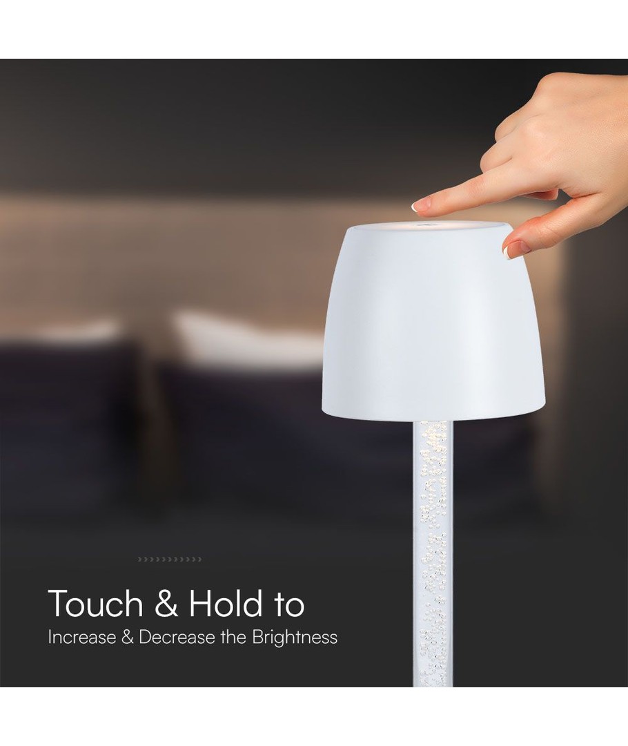 Opgrader din hjemmebelysning med denne 3W LED Bordlampe, der kombinerer praktisk funktionalitet med moderne design. Lampens transparente stang og hvide hus tilføjer et elegant touch til ethvert rum.