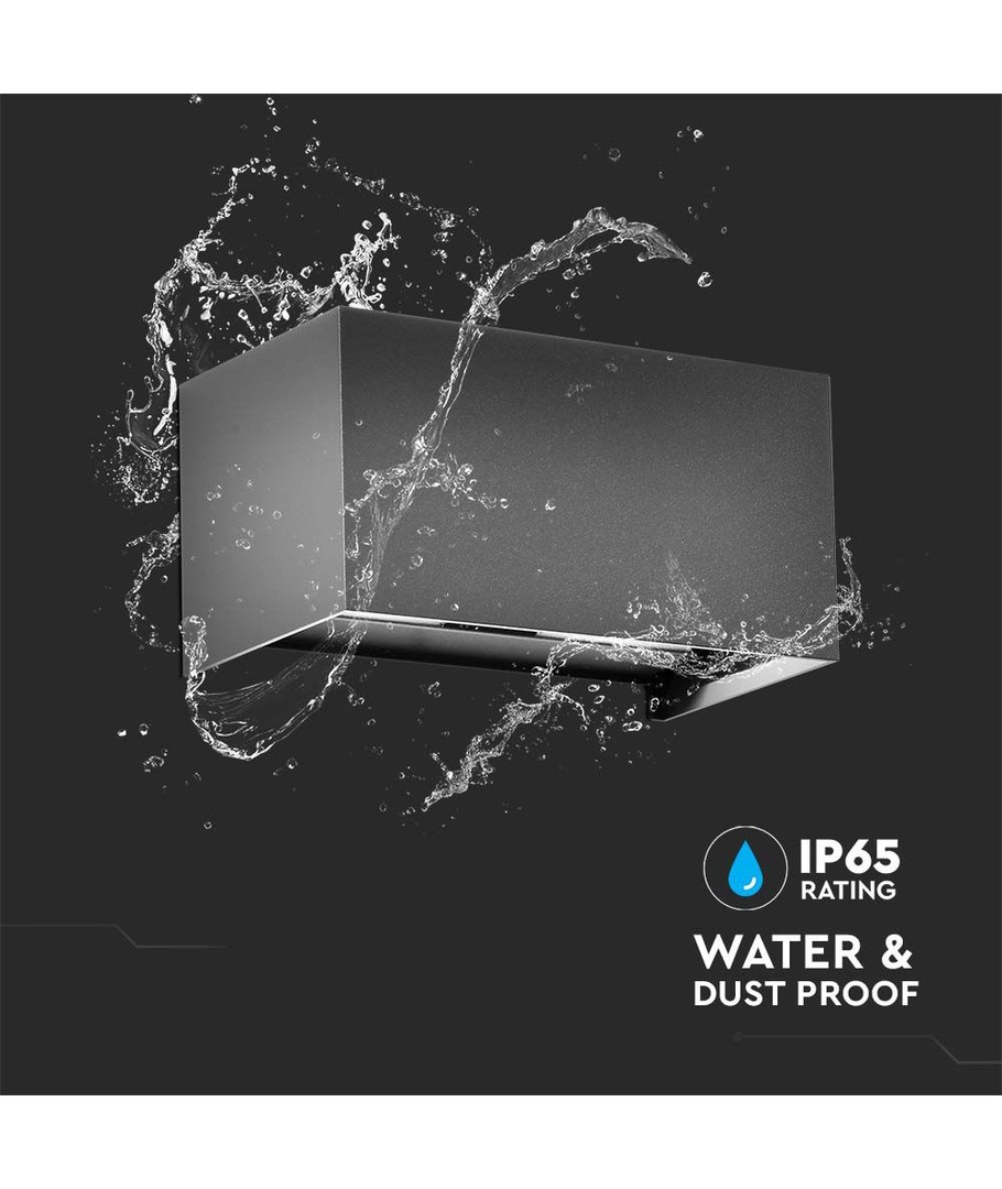 Med sin IP65 klassificering, kan lampen let anvendes udendørs, idet den er modstandsdygtig overfor vandstænk og regn. Dette gør den til en ideel løsning for både terrasser, indkørsler og facader.