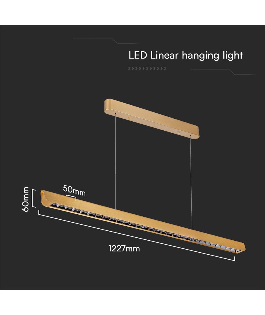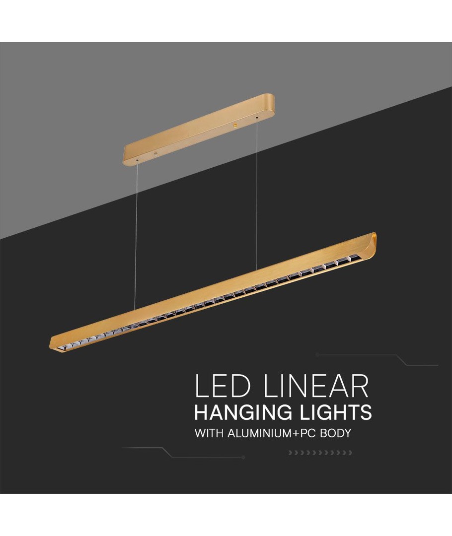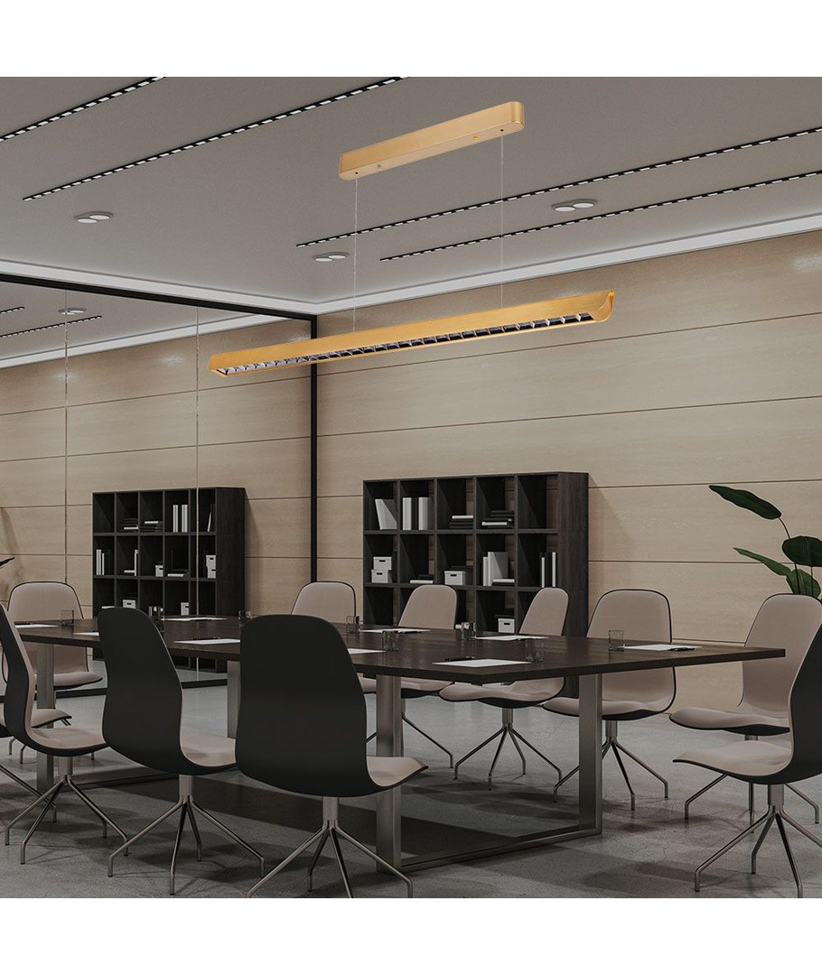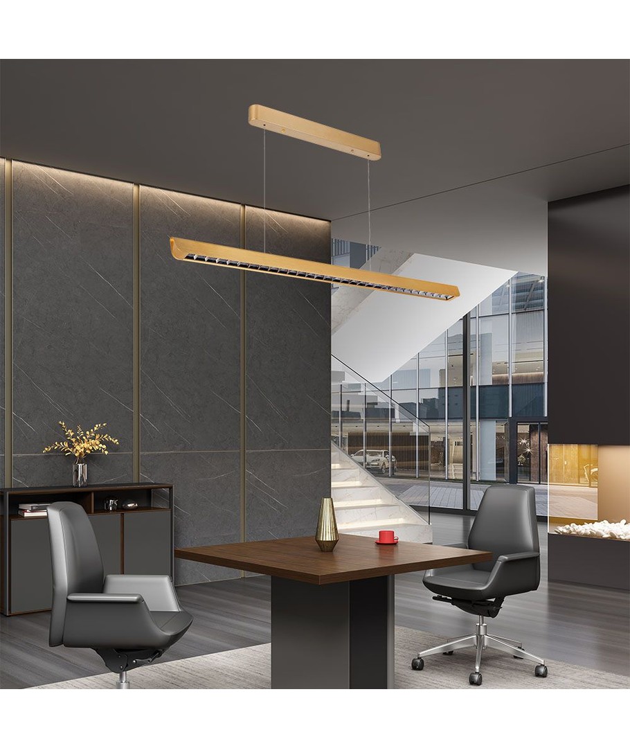 Denne LED-hængelampe kombinerer elegant design og effektiv belysning i et smukt guldfinish. Perfekt til moderne hjem eller kontorer, hvor stil og funktionalitet går hånd i hånd.