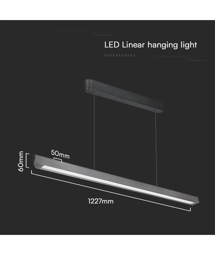 Produktfordele:Dimensionerne på dette lineære hængependel lys er 1227 x 50 x 60 mm, hvilket gør det ideelt til både erhvervsmæssig og privat brug. Designet i en smuk mat grå finish, passer det ind i ethvert moderne interiør.