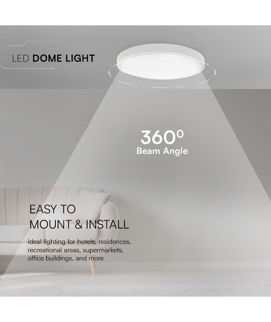 Dette LED Dome Lys byder på en perfekt kombination af effektivitet og æstetik, ideelt til enhver indendørs placering. Med en effekt på 24W og en imponerende lysudbytte på 2500 lumens, sikrer det en klar og effektiv belysning.