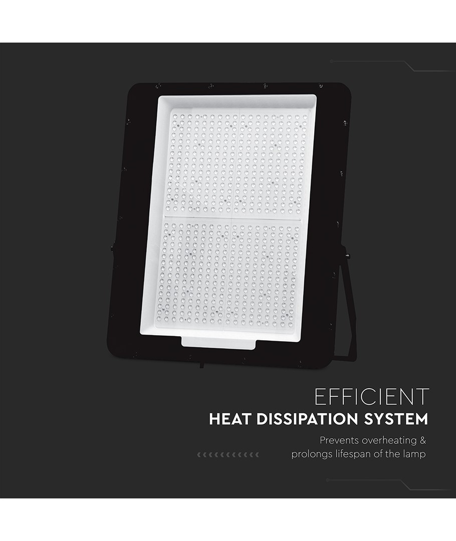 Opnå kraftfuld belysning med denne 1000W LED projektør fra V-Tac Pro serien, ideel til både professionelle og kommercielle anvendelser. Med en enestående lysudbytte på 160000 lumens og en effektivitet på 160lm/W, er denne projektør designet til at levere klar og tydelig belysning.
