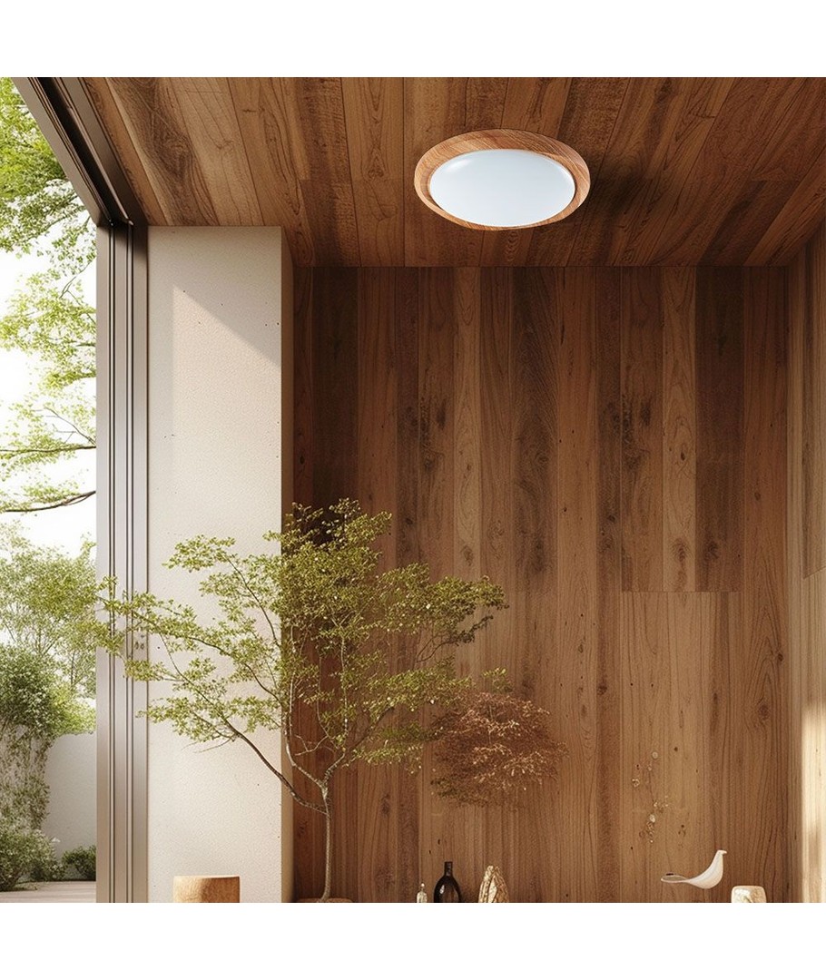 Denne loftlampe er ikke kun en kilde til lys; den er en del af din indretningsstil. Det moderne design med det stilfulde trælook tilføjer varme og elegance til dit hjem.
