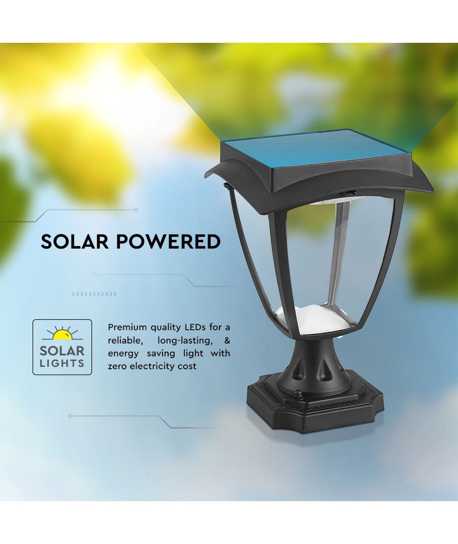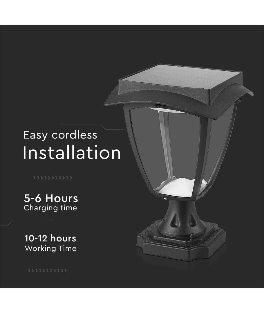 Med sit elegante design i mat sort, passer denne standerlampe perfekt ind i enhver moderne haveindretning eller terrasse. Takket være den indbyggede solcelleteknologi, er det også en bæredygtig belysningsløsning, der ikke kræver adgang til elektricitet, hvilket reducerer dit energiforbrug og sparer penge på elregningen.