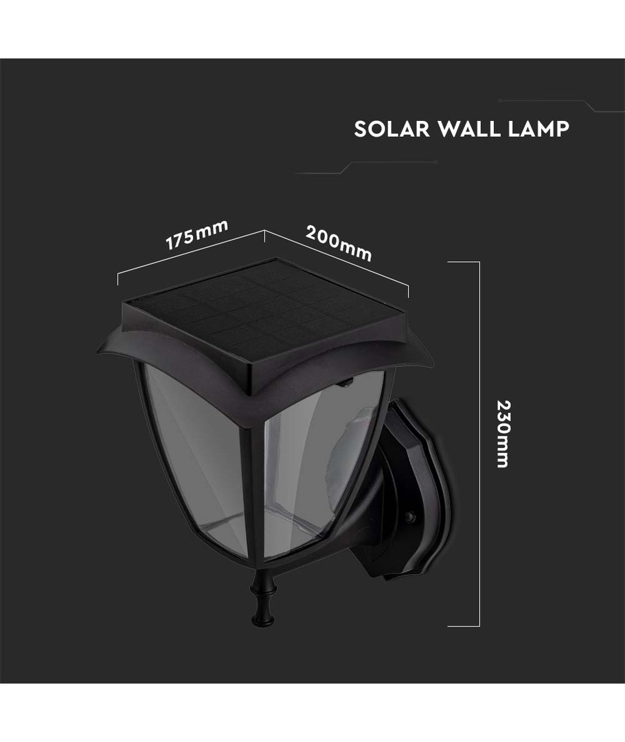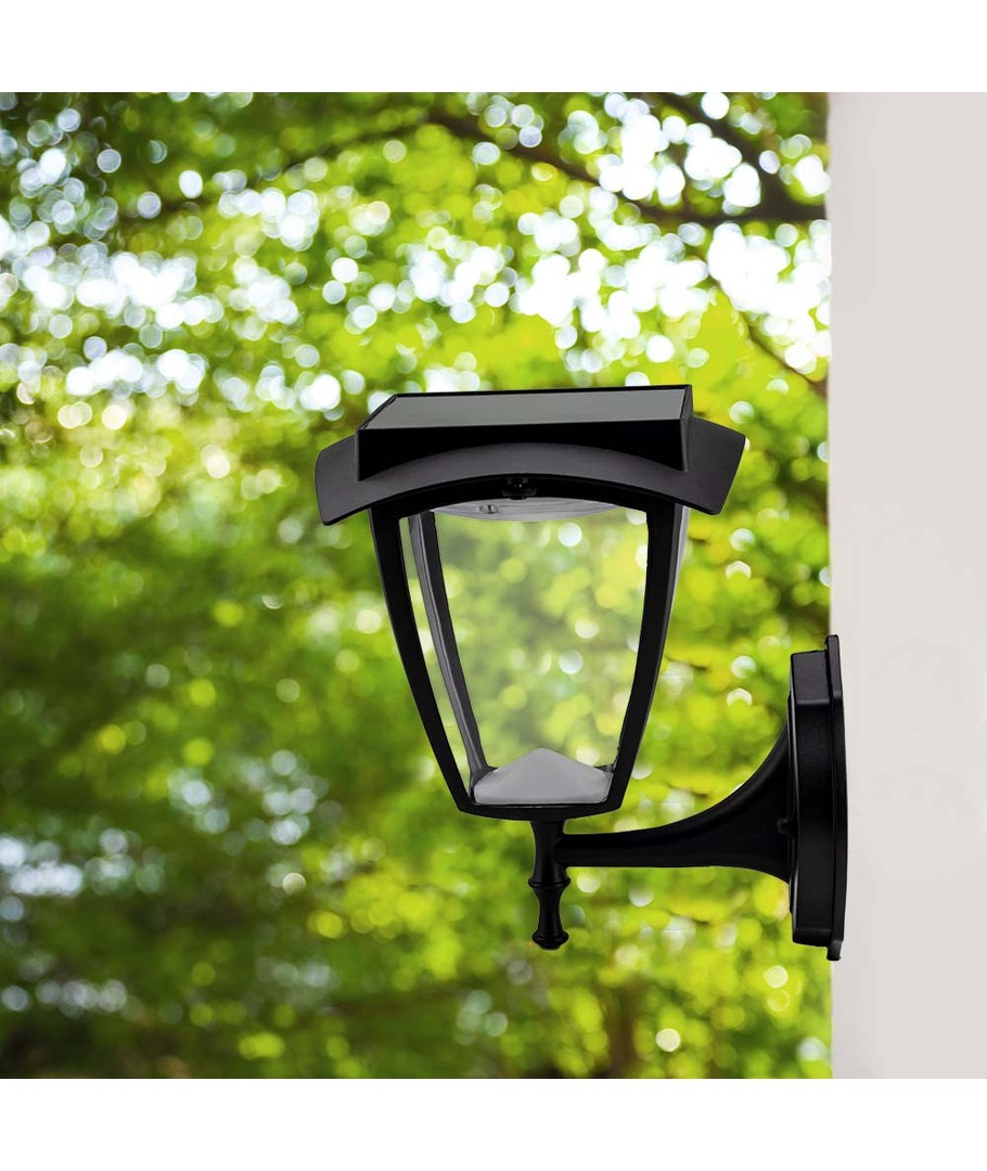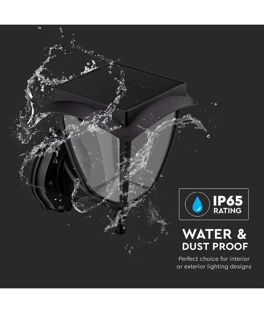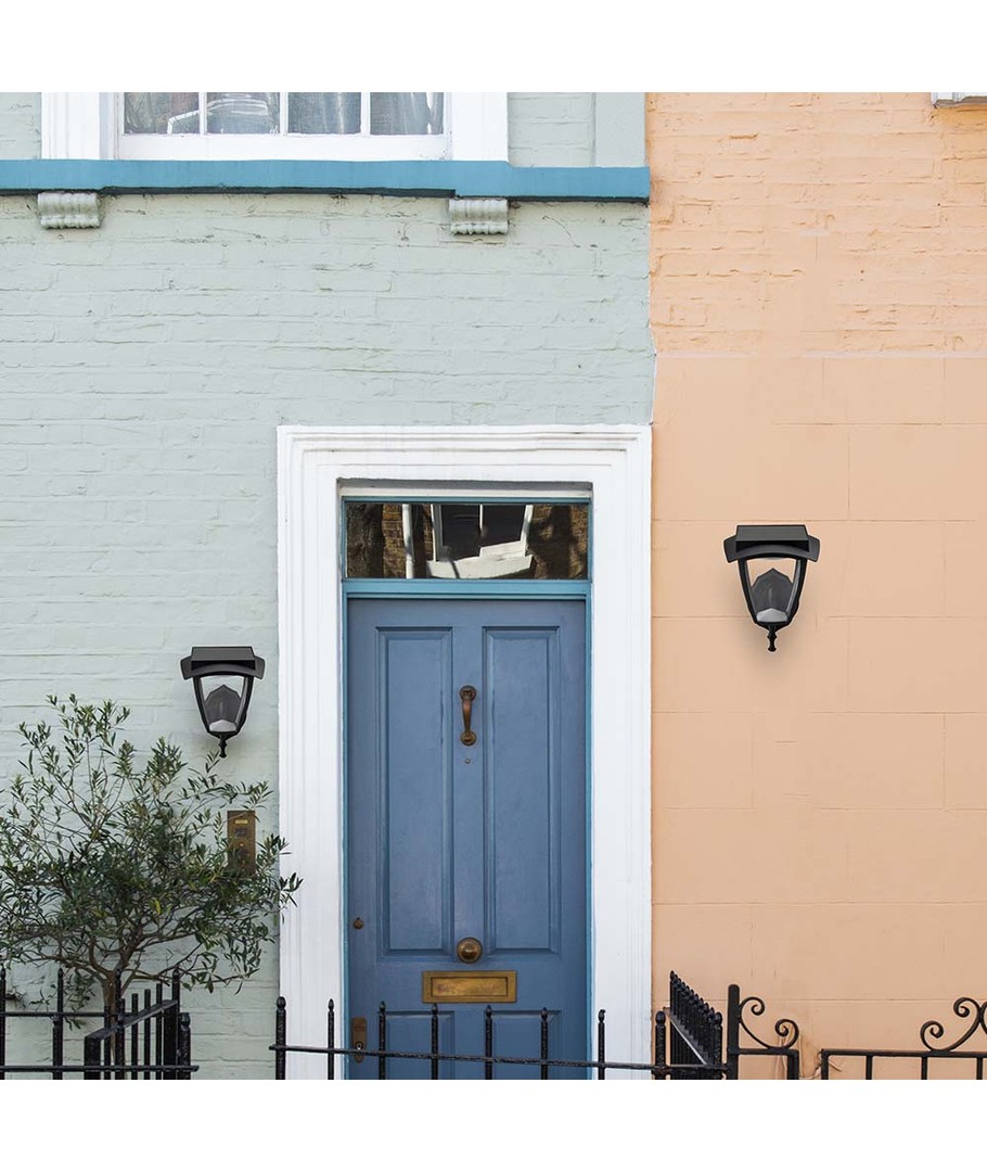 Med denne LED solcelle væglampe får du en stilfuld og energieffektiv belysningsløsning til udendørs anvendelse. Lampen har et elegant design med et mat sort hus, der passer diskret ind i enhver udendørsindretning.