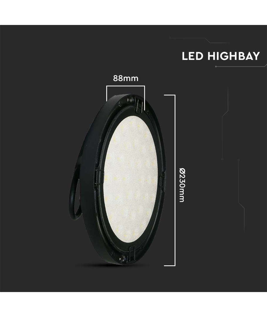 Med en IP65 klassificering er VT-92100 100W LED HIGHBAY velegnet til udendørs brug. Den kan modstå både vandstænk og regn, hvilket giver ekstra pålidelighed og holdbarhed under forskellige vejrforhold.