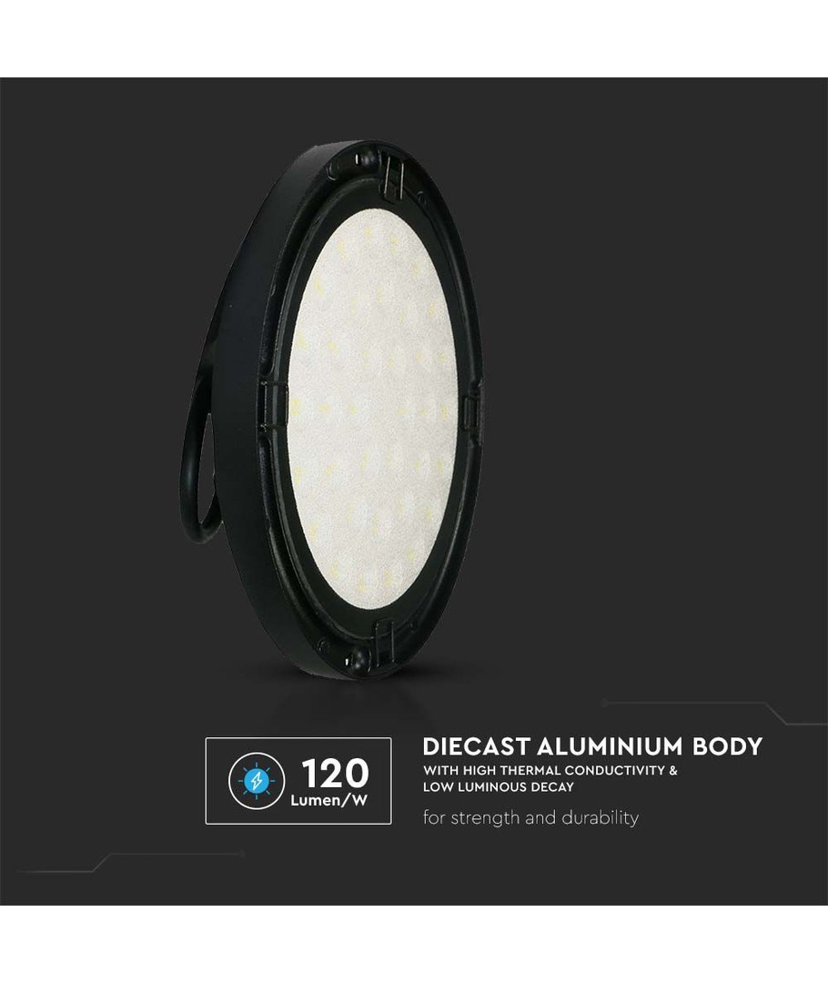 Med en effektivitet på 120 lumen pr. watt, tilbyder denne LED highbay ikke kun økonomisk drift, men også langvarig stabilitet. Dette er belysningen, der kombinerer ydeevne med holdbarhed, uanset om du har brug for den i en lagerhal, et værksted eller andre industrielle miljøer.