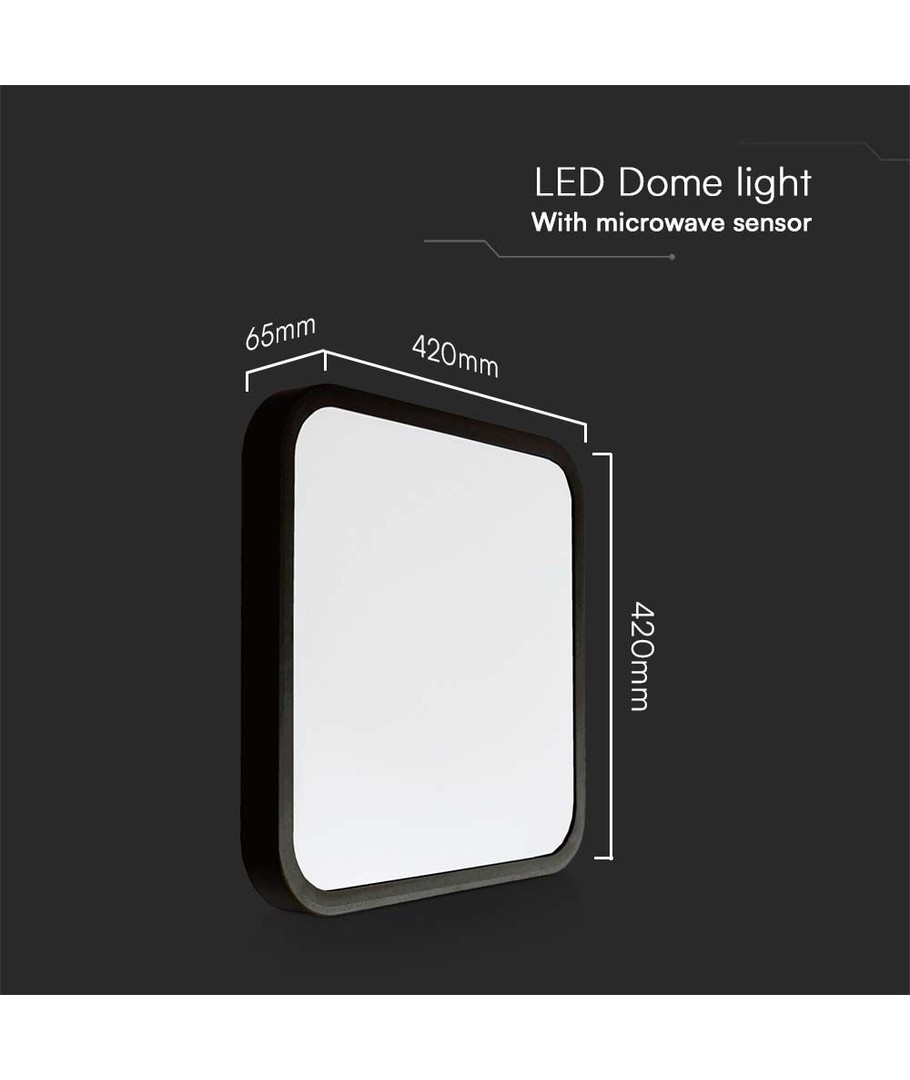 Designet med en sort ramme og dimensioner på 420 x 65 x 420 mm, passer dette lysdiskrete ind i de fleste omgivelser. Dets firkantede form og neutrale farvetemperatur sikrer, at belyste objekter ser naturlige ud uden blå eller gule toner.