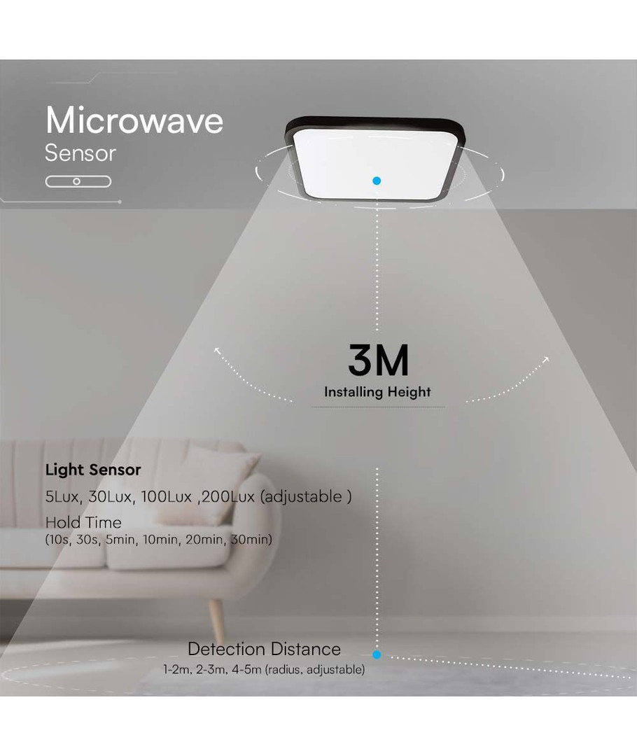 IP44-klassifikationen betyder, at dette LED-dome lys er ideelt til brug i områder, der udsættes for fugt og vandstænk. Med den avancerede mikrobølge sensor aktiveres lyset automatisk, hvilket gør det både energieffektivt og bekvemt.