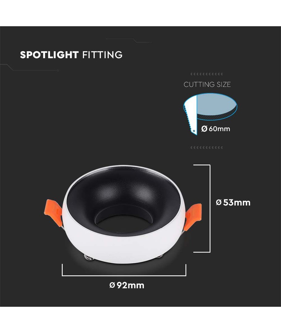Oplev den elegante og funktionelle belysning med denne GU10 lampe, der kommer i en rund hvid ramme og en sort reflektor. Perfekt til at skabe en stilren atmosfære i ethvert rum.