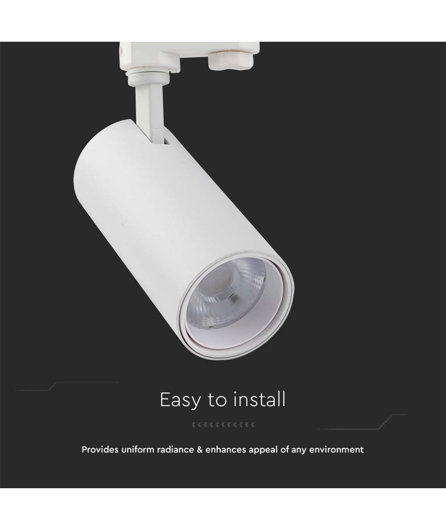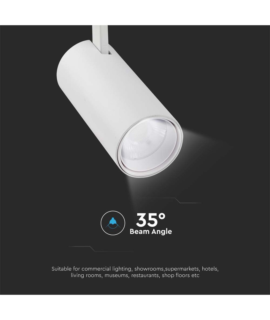 Med en imponerende lysstyrke på 2900 lumens og en fokuseret lysstråle på 35 grader sikrer denne skinnespot et kontrolleret og præcist lys. Dette gør den ideel til anvendelse i områder, hvor der er behov for direkte belysning.