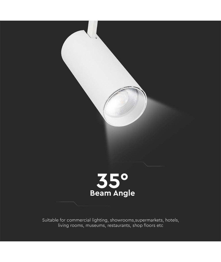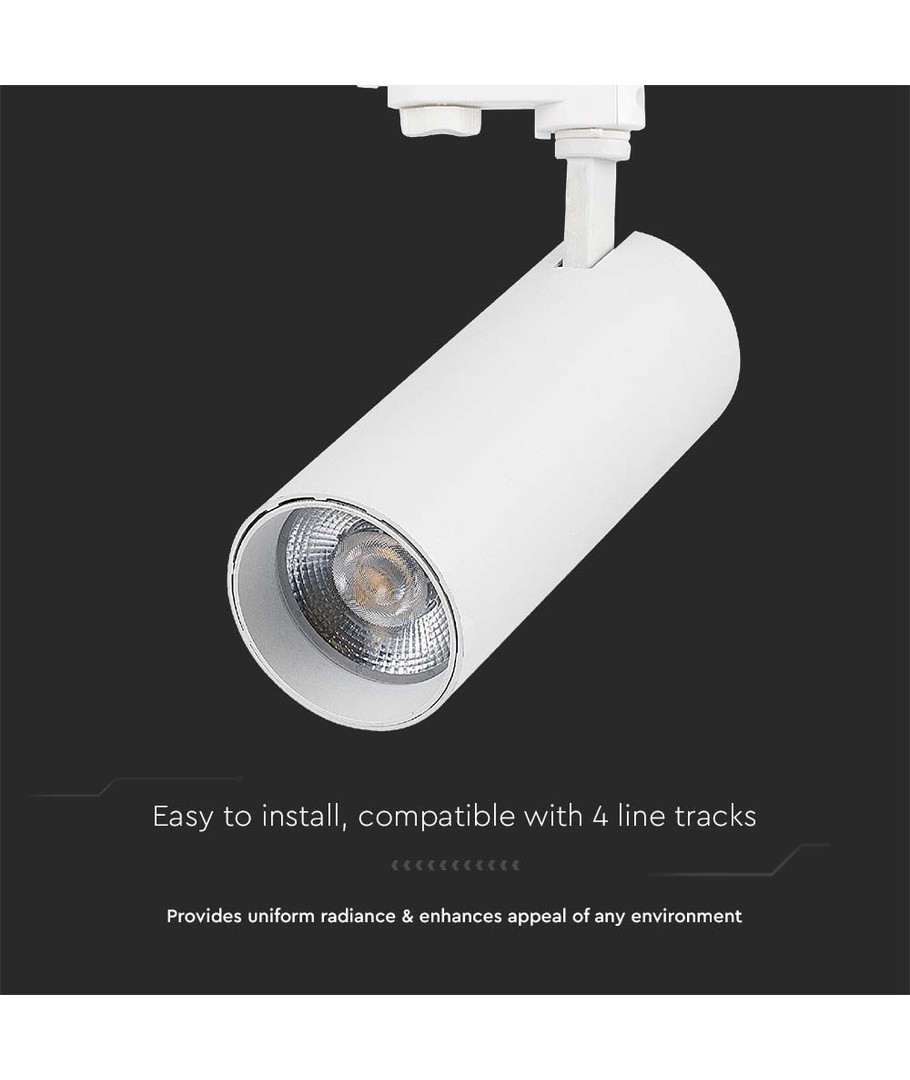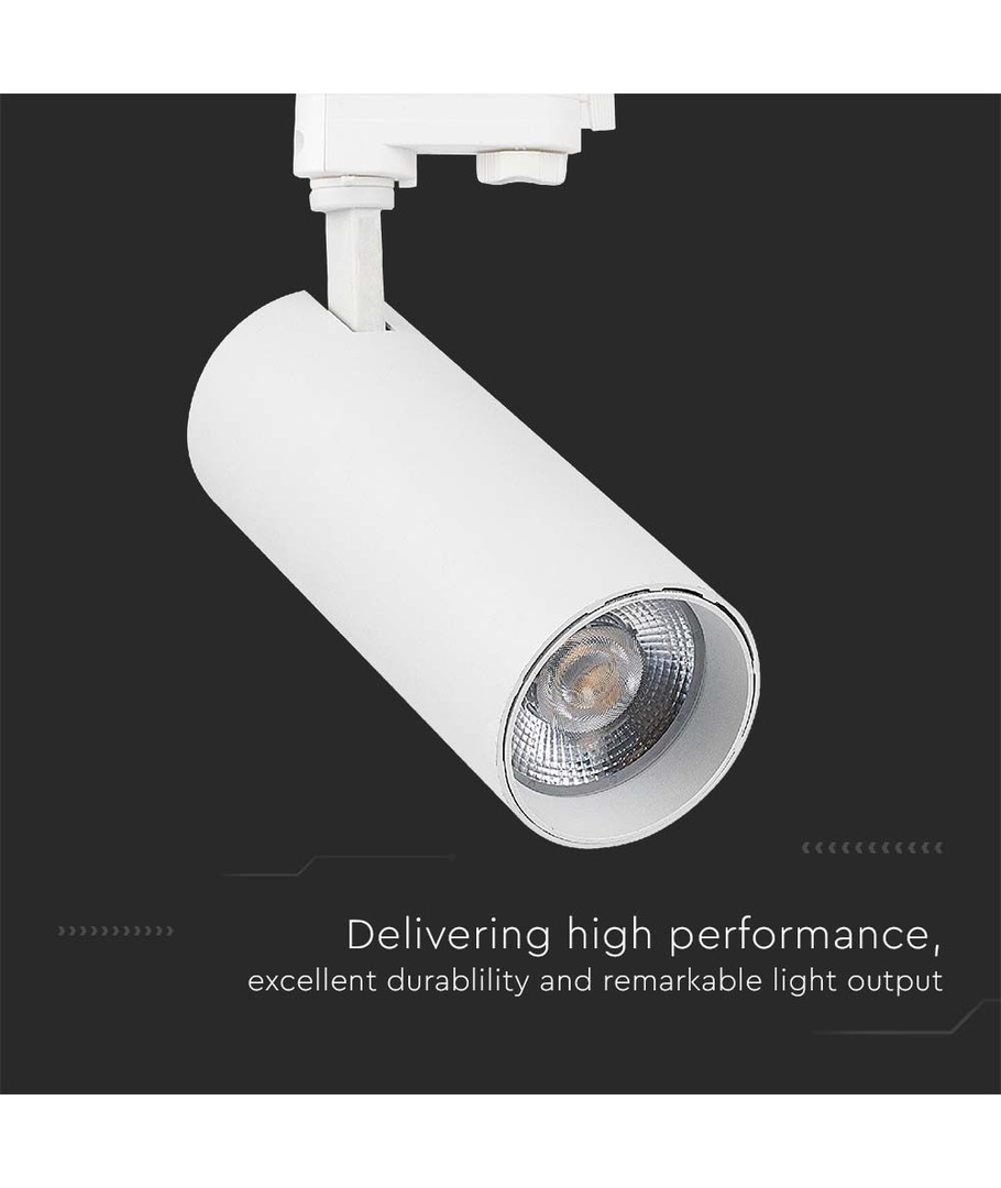 Med en effekt på 40W leverer VT-47050 skinnespots en fantastisk belysningsløsning, der er specielt designet til professionelle omgivelser som gallerier, udstillingsrum og detailbutikker. Denne skinnespot er udstyret med COB LED-teknologi, som sikrer høj energieffektivitet og lang levetid.