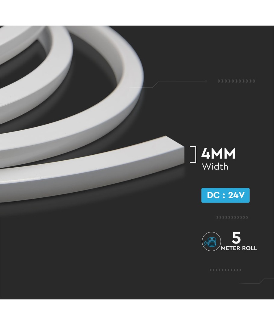 Det leveres i praktiske 5 meter rullelængder og fungerer med en 24V spænding, hvilket gør det let at installere og bruge i forskellige miljøer og situationer.