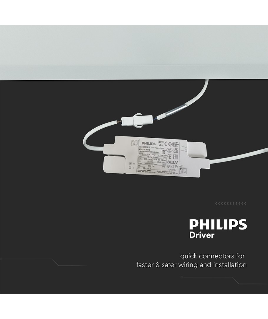 Med en høj effektivitet på 120 lumen pr. watt, tilbyder dette panel eksisterende belysningsløsninger en miljøvenlig og økonomisk fordel. Det integrerede system er udstyret med en Philips driver, der sikrer stabil og pålidelig ydeevne.