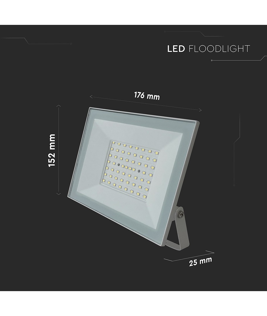 Projektøren udsender lys i en kold hvid farvetemperatur på 6500K, hvilket giver et klart og skarpt lys med et blåligt skær. Dette lys kan være ideelt til særlige anvendelser såsom malerkabiner, akvarier eller speciel dekoration.
