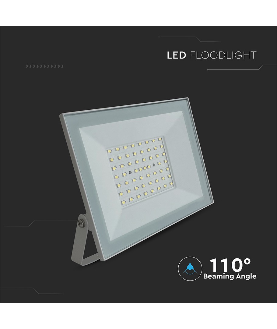 Med en IP65-klassificering er denne LED-projektør designet til at modstå vandstænk og regn, hvilket gør den velegnet til udendørs installation. Det robuste hvide hus sikrer både holdbarhed og et elegant udseende.