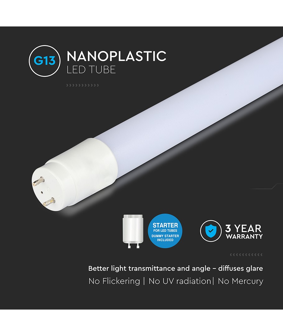Med en bred lysfordeling på 160 grader sikrer dette nano plastikrør, at lyset spredes jævnt i rummet. Den høje RA værdi på 80-85 garanterer en naturlig lysoplevelse, hvor farverne fremstår klare og tydelige, hvilket er perfekt til både professionelle og private miljøer.