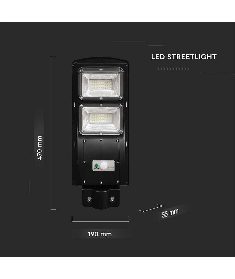 Det stilfulde sorte hus og de holdbare materialer sikrer lang levetid og pålidelig ydelse, uanset vejret. Med St120 VT LED Solar Streetlight kan du skabe tryghed og forbedre æstetikken i dine udendørs områder, mens du sparer energi og skåner miljøet.