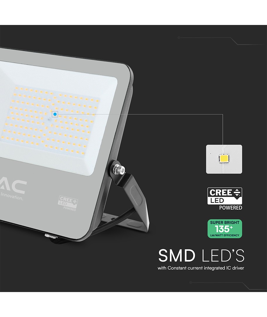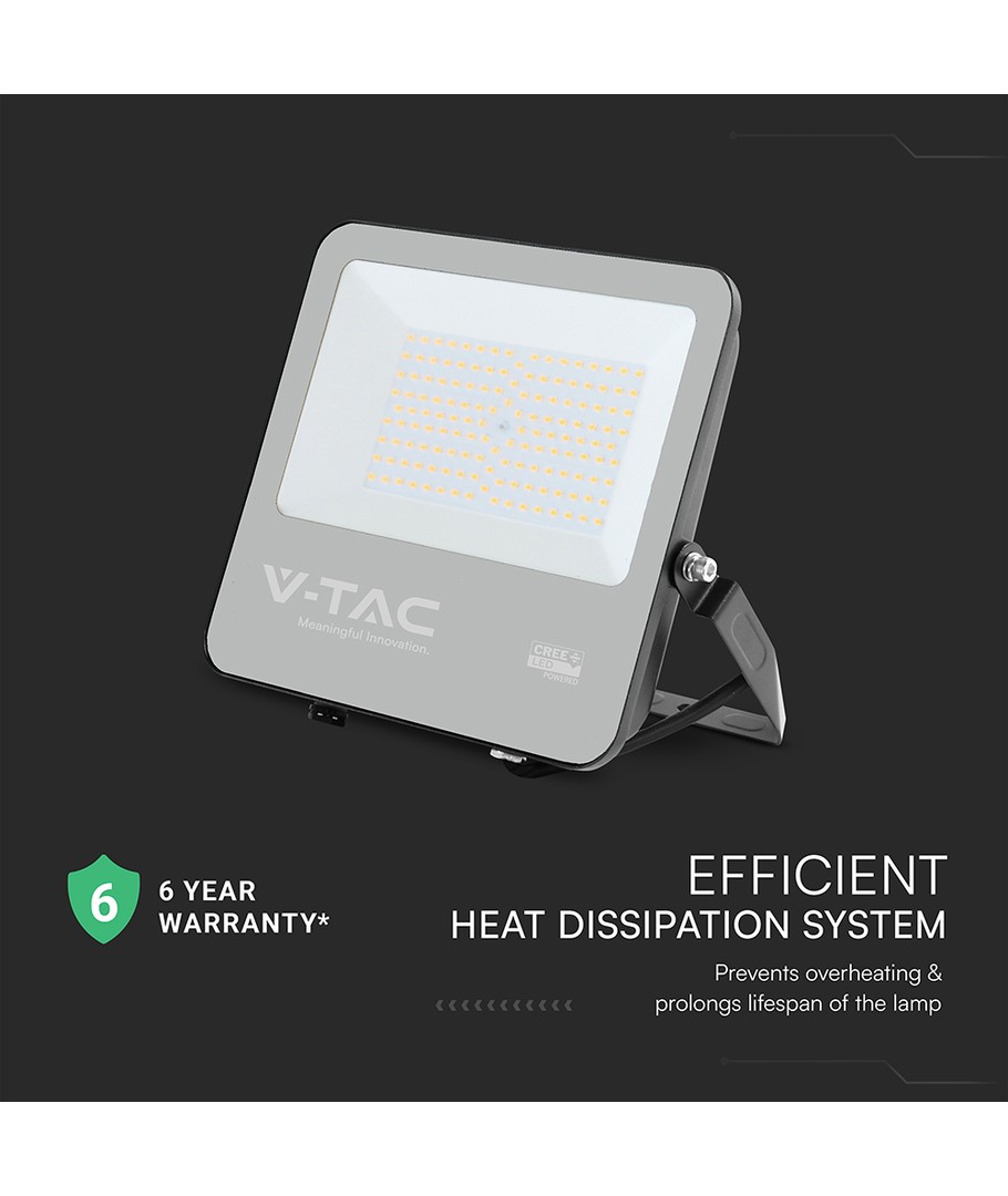 Med en beskyttelsesklasse på IP65 er projektøren designet til at modstå udfordrende udendørs forhold. Den er vandafvisende og kan modstå både vandsprøjt og regn, hvilket gør den til et pålideligt valg for udendørs belysning i alle slags vejr. Den højkvalitets LED-chip og den effektive køling garanterer pålidelig ydeevne i mange år.