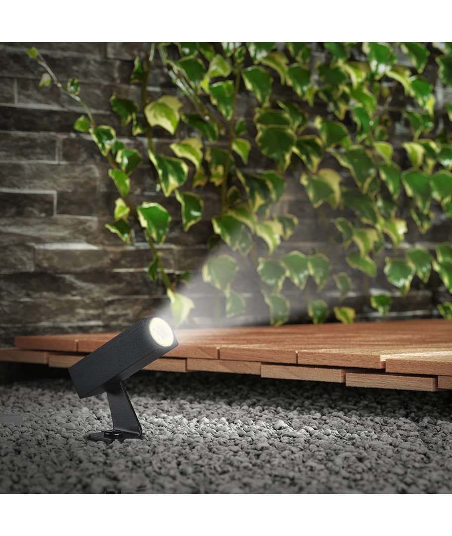 Det elegante sort aluminiumshus giver lampen et moderne look, der passer ind i enhver indretningsstil. Perfekt til belysning af indkørsler, havegange eller specifikke områder i dit hjem, hvor der er behov for lidt ekstra lys.