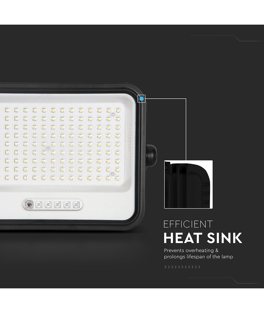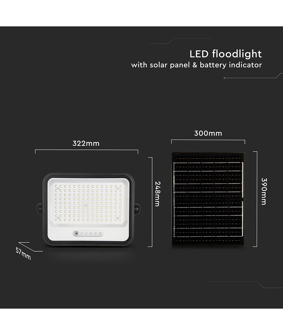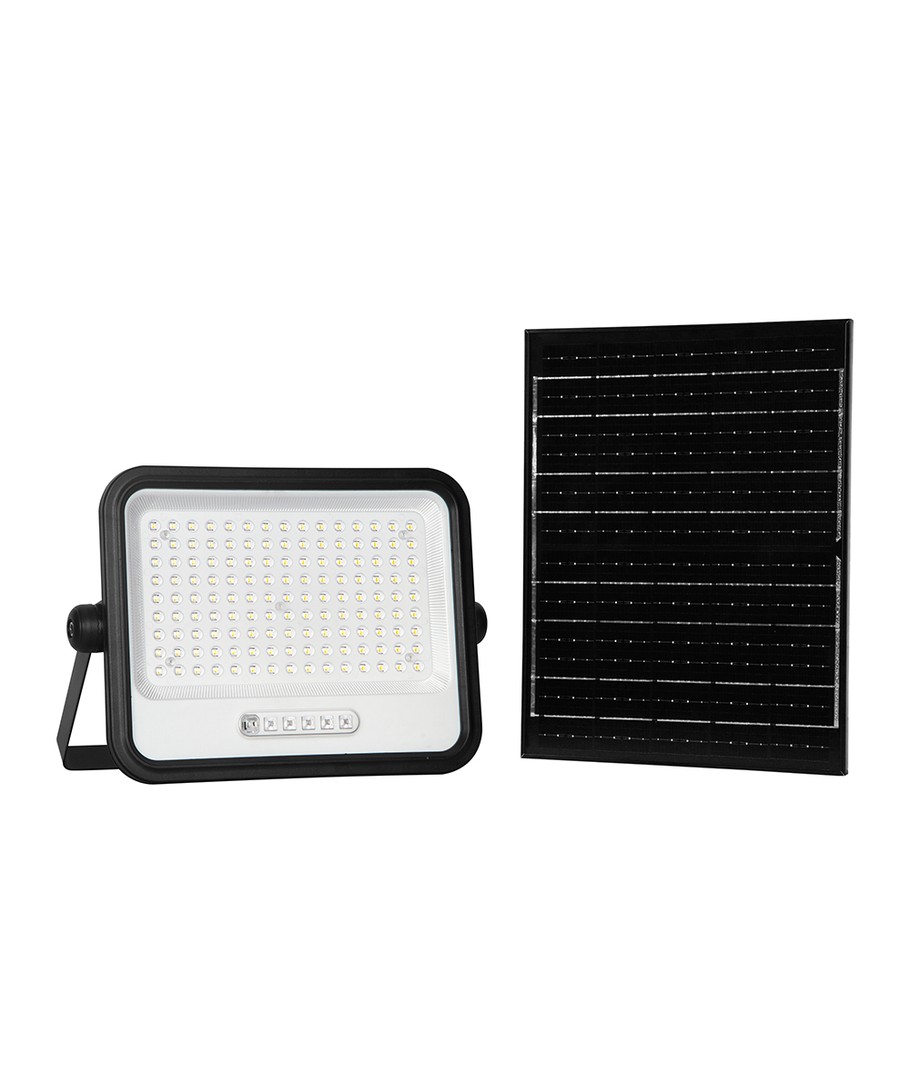Oplev kraftfuld belysning med denne 300W LED projektør med solpanel, der leverer en imponerende lysstyrke på 2400 lumens. Den er skabt til at imødekomme behovet for klar og omfattende belysning, både til private og kommercielle formål.