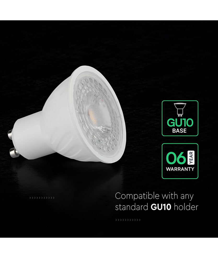 Lyskilden leverer en lysstyrke på 445 lumens og har en fokuseret lysvinkel på 38°. Med en RA-værdi på 80-85 sikrer dette spotlight, at farver vises naturligt og ægte, hvilket gør det velegnet til de fleste formål.