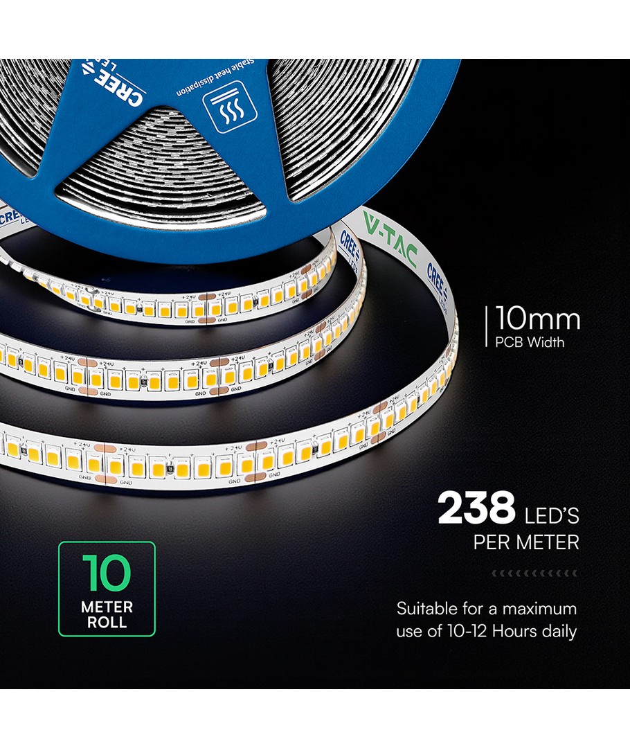 Perfekt designet til projekter, hvor lysets farve og kvalitet spiller en vigtig rolle. Denne lysliste kommer i 10 meter ruller med en bredde på 10 mm, hvilket gør den nem at installere og tilpasse til forskellige behov og anvendelsesområder.