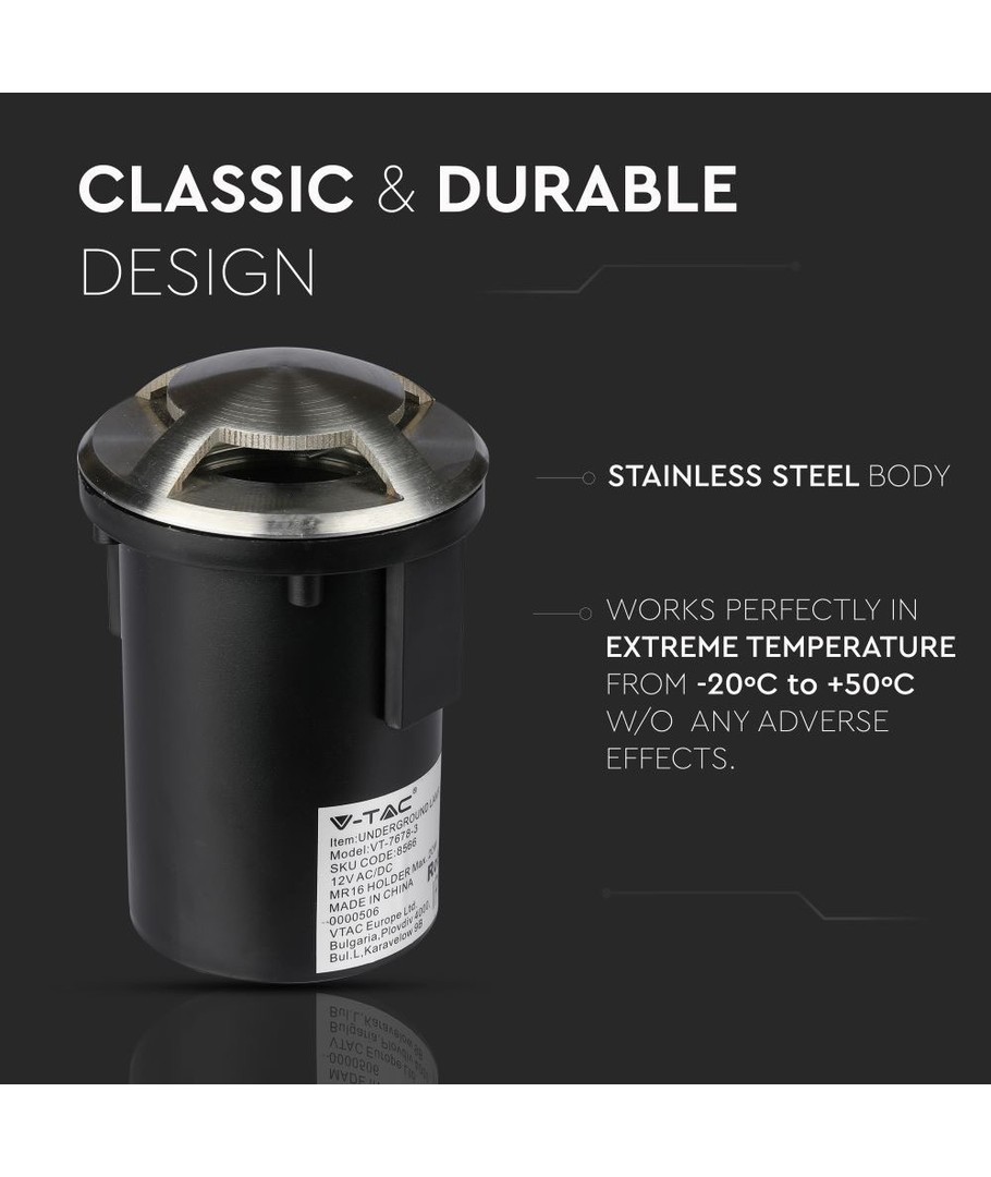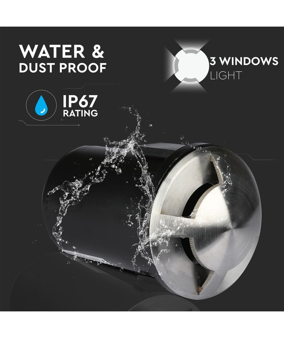 V-Tac Pro serie nedgravningsspotlampen er designet til dem, der ønsker stil og funktionalitet i én pakke. Denne spotlampe, med tre vinduer, er ideel til at fremhæve haver, indkørsler eller stier.