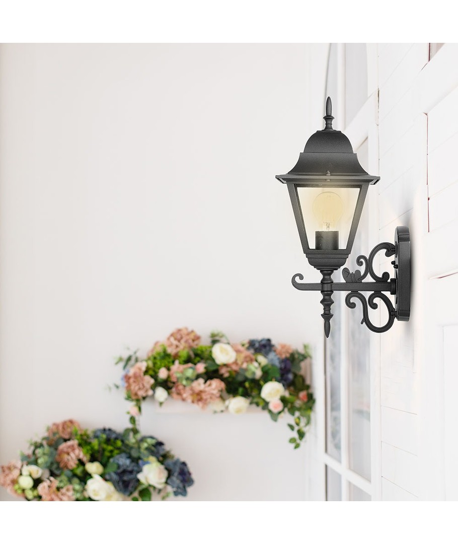Lampens opadvendte design sikrer en behagelig og bred lysspredning, der lyser dine udendørsområder op på den mest præcise måde. Dette gør den perfekt til såvel indgangspartier som terrasser, hvor en imødekommende og sikker belysning er essentiel.