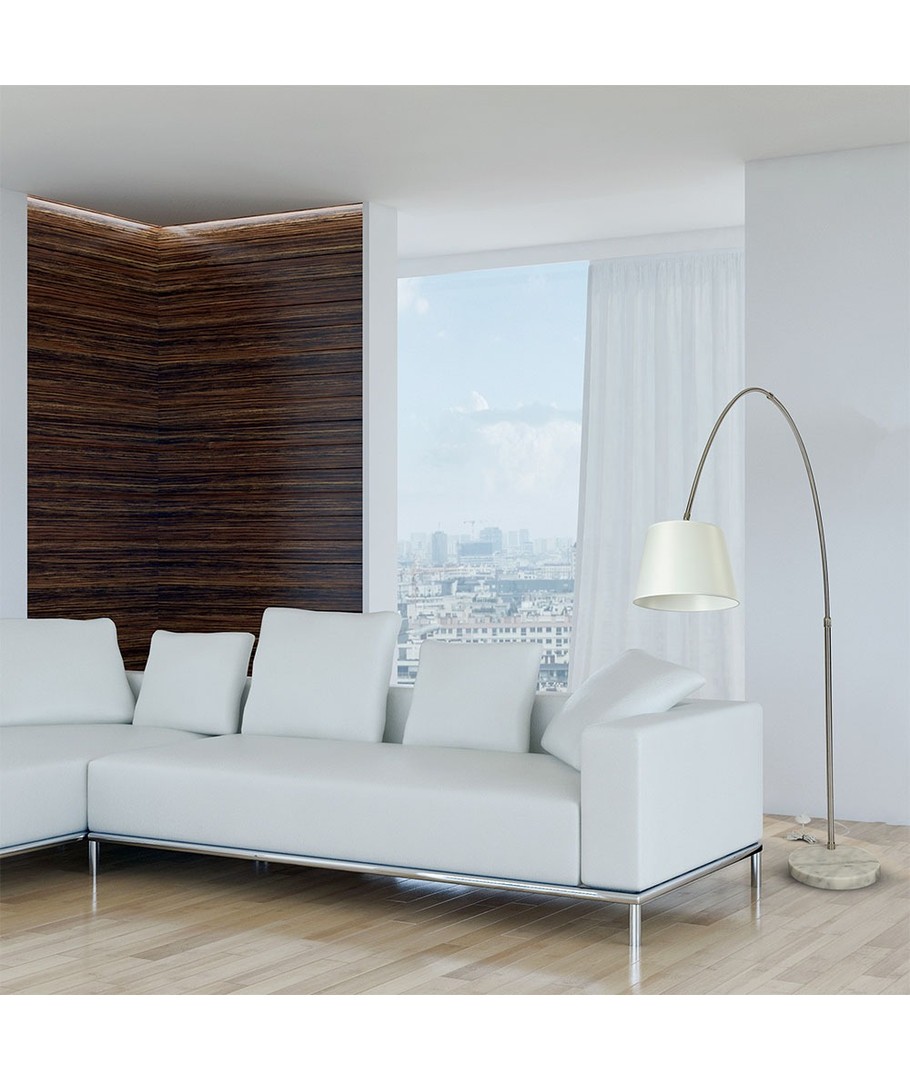 Den slanke lampe står stabilt på en iøjnefaldende marmorfod. Den smukt udførte elfenbensfarve tilføjer et moderne touch, som nemt kan integreres i ethvert rum. Lampens imponerende dimensioner på 1960 x 1920 mm gør den til et iøjnefaldende element i din indretning.