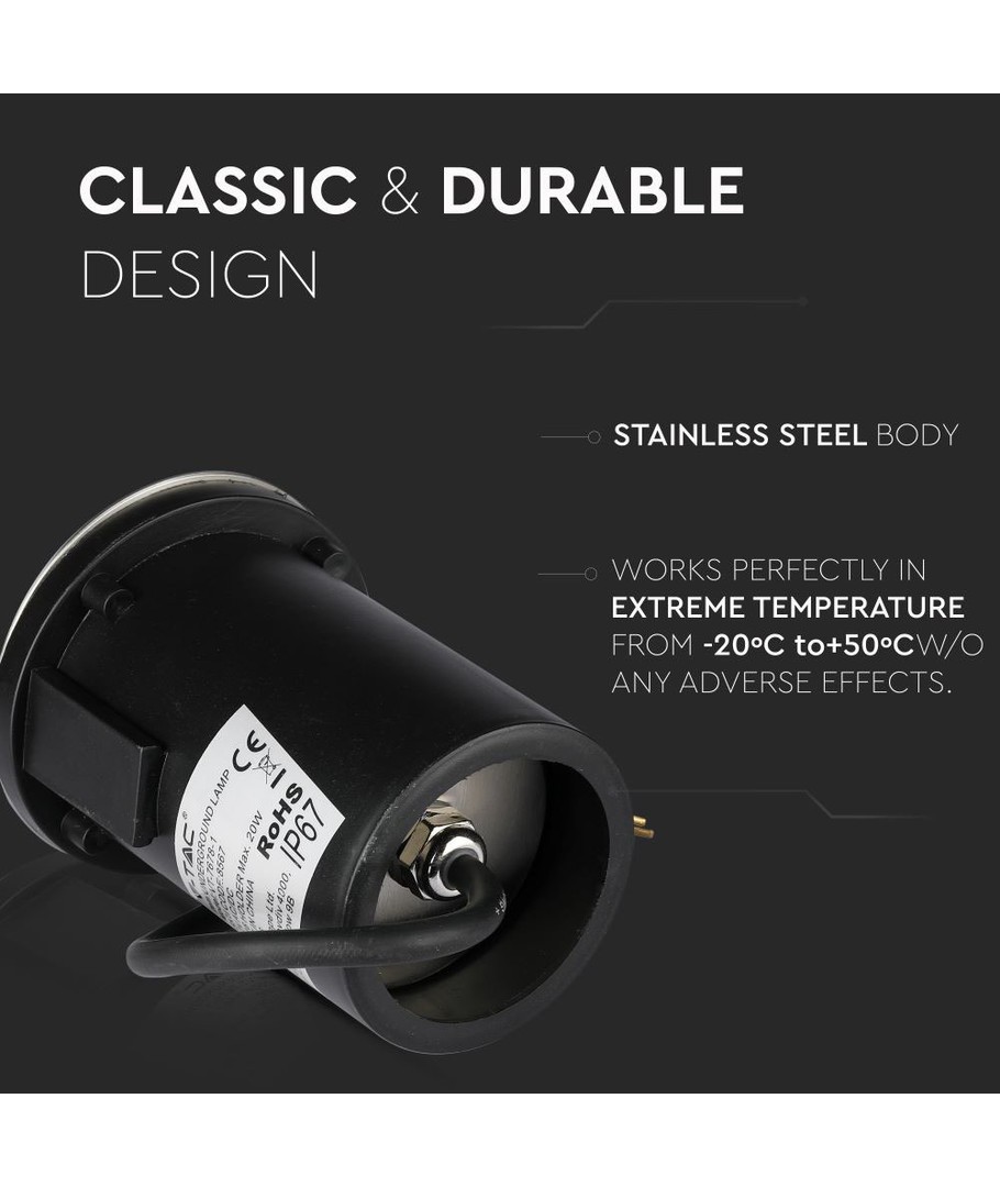 Investér i Vt-7678-1 MR16 nedgravningsspotlampe for at forbedre både funktionalitet og æstetik i din udendørs belysning og nyd godt af ro i sindet med den medfølgende 3 års garanti.