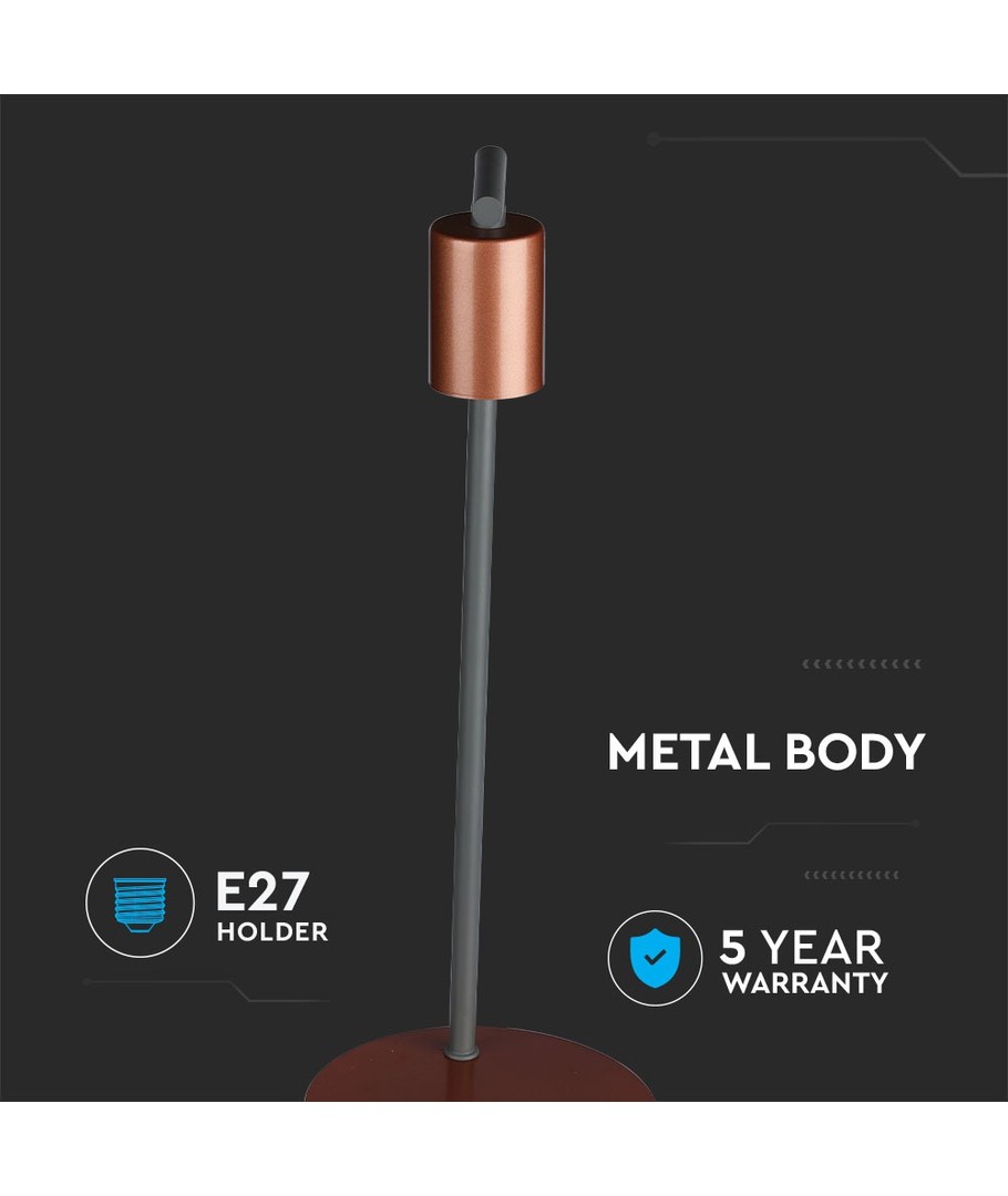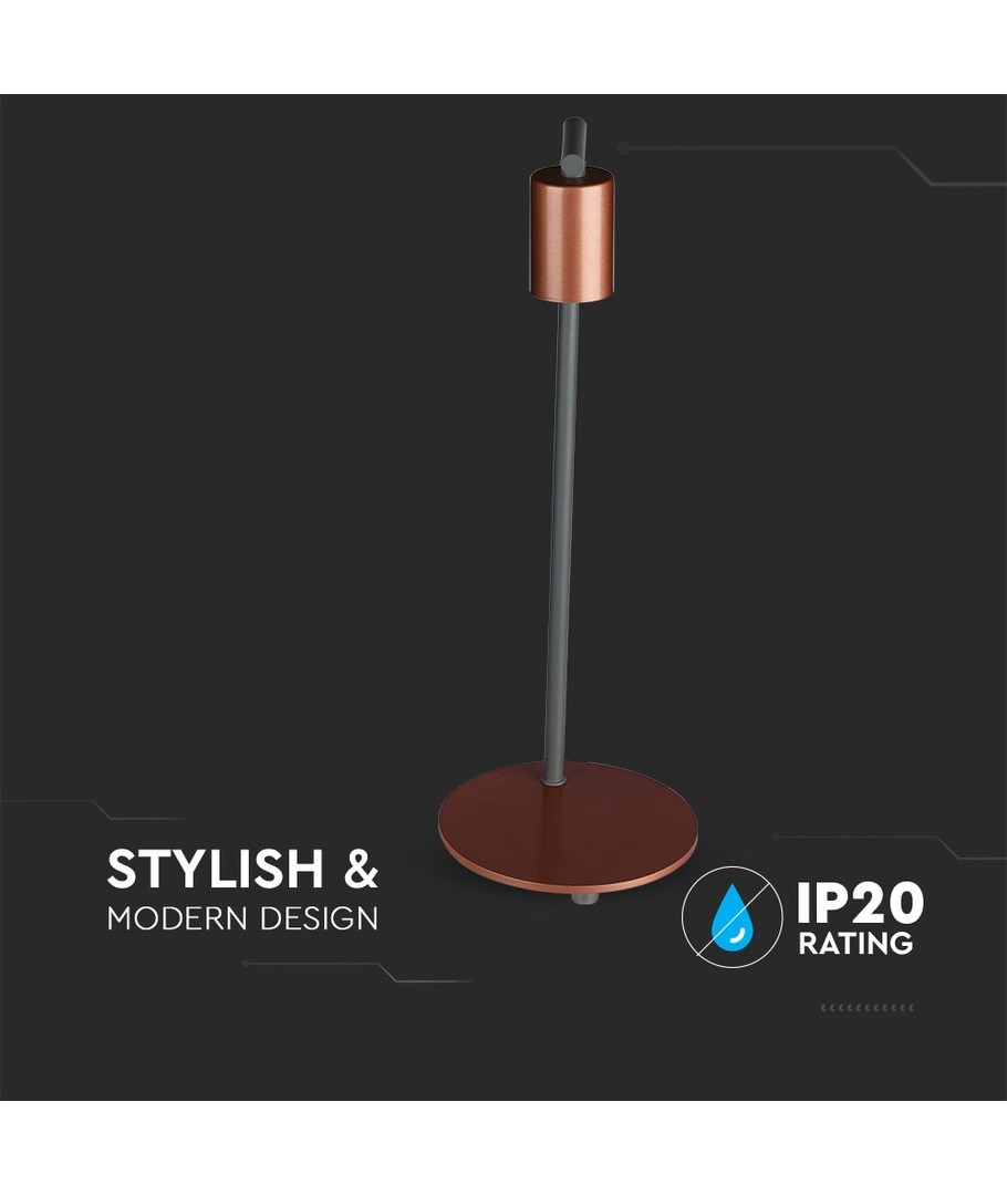 Giv dit rum et strejf af elegance med denne stilfulde bordlampe fra V-Tac Pro serien. Med sin røde bronze finish passer lampen perfekt ind i både moderne og klassiske indretninger.