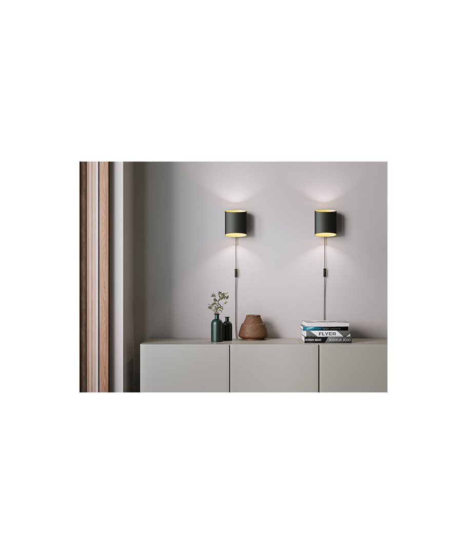 Flot, sort væglampe med en indre beklædning i messing, samt en fatning til G9 pære, som vil lyse både op og ned.