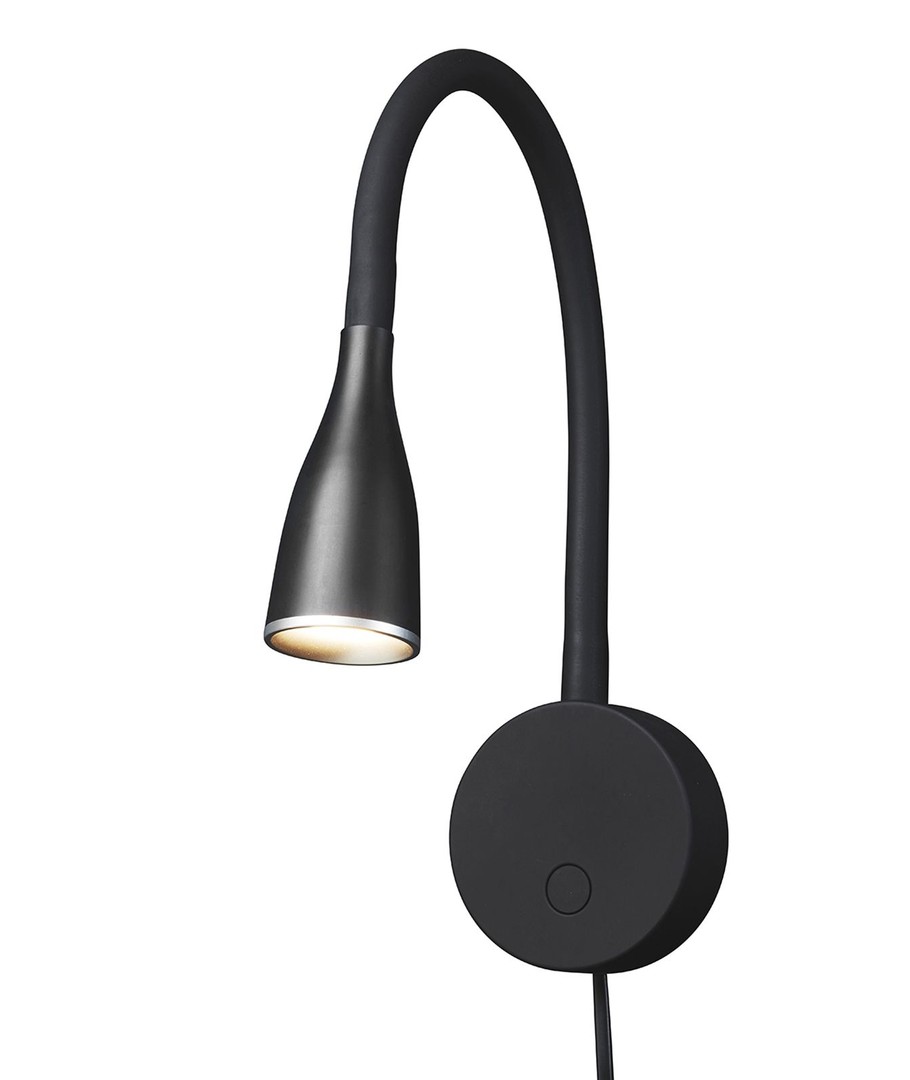 Enkelt Sort LED væglampe med navnet EYE fra Nielsen Light - Lampen leveres med fleksibel hals for nemt retningsbestemt belysning. Lampen giver et fint klar varmt hvidt lys - perfekt til læsning i hjemmet eller i din virksomhed. LED lampen leveres klar til brug med 1,5 meter ledning og stikprop.