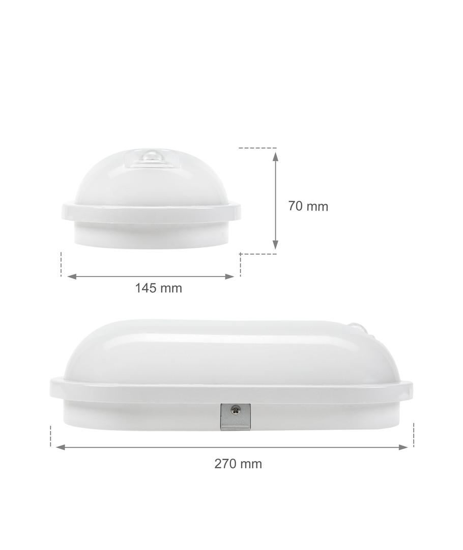 Lampen er designet med et IP54 beskyttelsesniveau, hvilket betyder, at den tåler fugtig luft og vandstænk, hvilket gør den ideel til både indendørs og udendørs brug. Den kommer med et integreret lyskilde, hvilket sikrer enkel installation og vedligeholdelse. Derudover har den også en PIR sensor, der øger energieffektiviteten ved at aktivere lyset kun når det er nødvendigt.